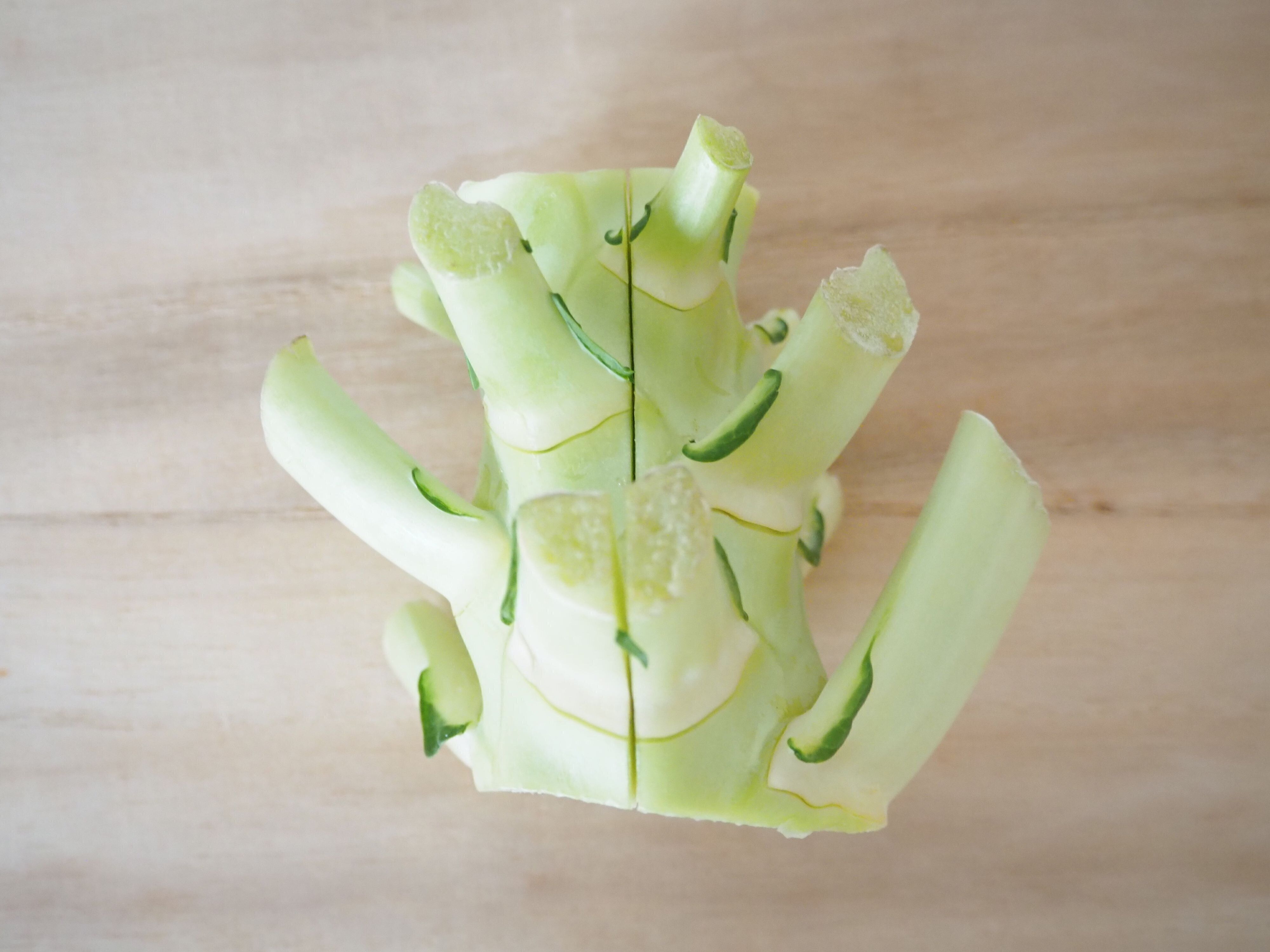 では、さっそく実践してみましょう。まずはつぼみから茎を切り離し、縦に切り込みを入れます。