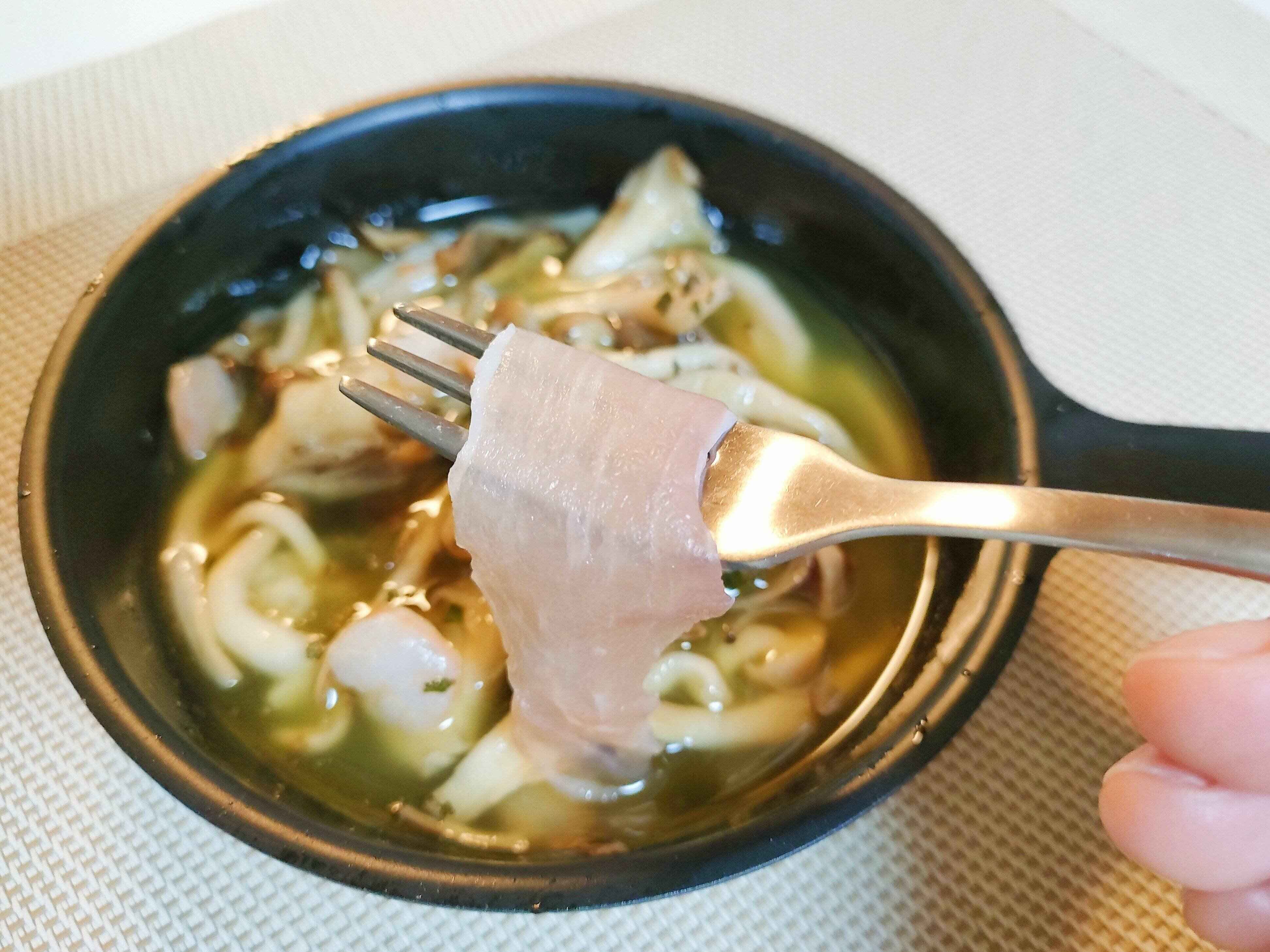 フォークでとりだしてみても、フォークが微かにしか見えないほど!!厚みはしっかりしているのに、子どもも大人も食べやすいソフトな食感で、噛めば噛むほど風味を感じられます。