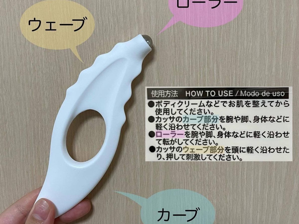 マッサージに使う「かっさ」をさらにパワーアップさせた「カッサウェーブ」。「オンラインで完売中の大人気商品!」と注目度の高いアイテムです。ローラーがついているので、耳の下のリンパや首などの細かい場所に刺激を与えることができます。カーブ部分は、腕や脚、フェイスラインのマッサージに。ウェーブ部分は、頭皮のマッサージに最適です。部位を変えて、数種類の刺激を与えられる優秀なマッサージアイテムが110円で試すことができます。