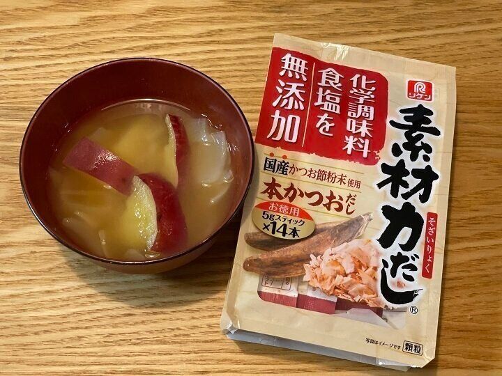 「うちの子たちは野菜が苦手なのですが、おみそ汁に入れると食べるので、季節の野菜を2種類以上入れるようにしています。今なら旬のさつまいもが、甘みが強くておすすめ」とTomekeimamさん。旬の味をより引き立てるのも「素材力だし」の魅力。腸活メニューとしてもこの秋おすすめです。