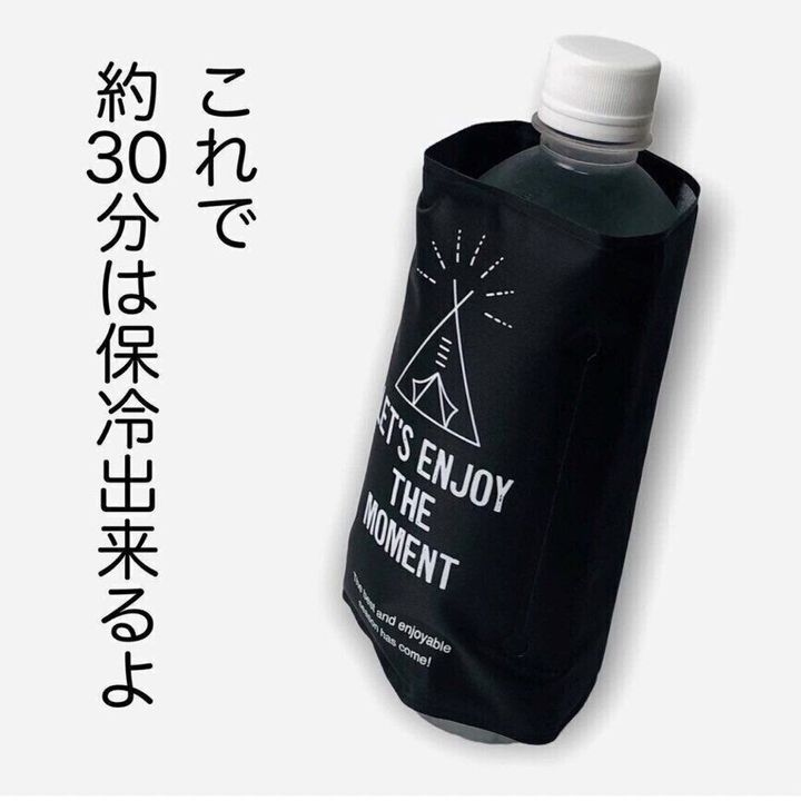 ちょっとしたお出かけの時に、わざわざ水筒に飲み物を移し替えるのは洗い物も増えるし面倒ですよね。こちらの「保冷剤(500mLボトル用)」(220円)なら、ペットボトルにクルっと巻いてマジックテープで止めるだけでしっかり保冷されます。保冷時間は約30分なので、お散歩や買い出しの時にぴったりです。