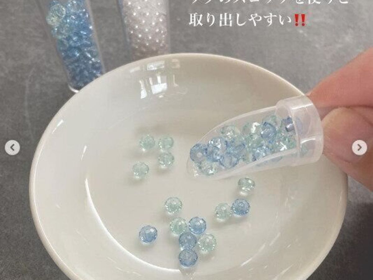 細かいビーズは、袋から出すときに飛び散りやすかったり、容器に入れにくかったり、ちょっと扱いにくいアイテムですよね。