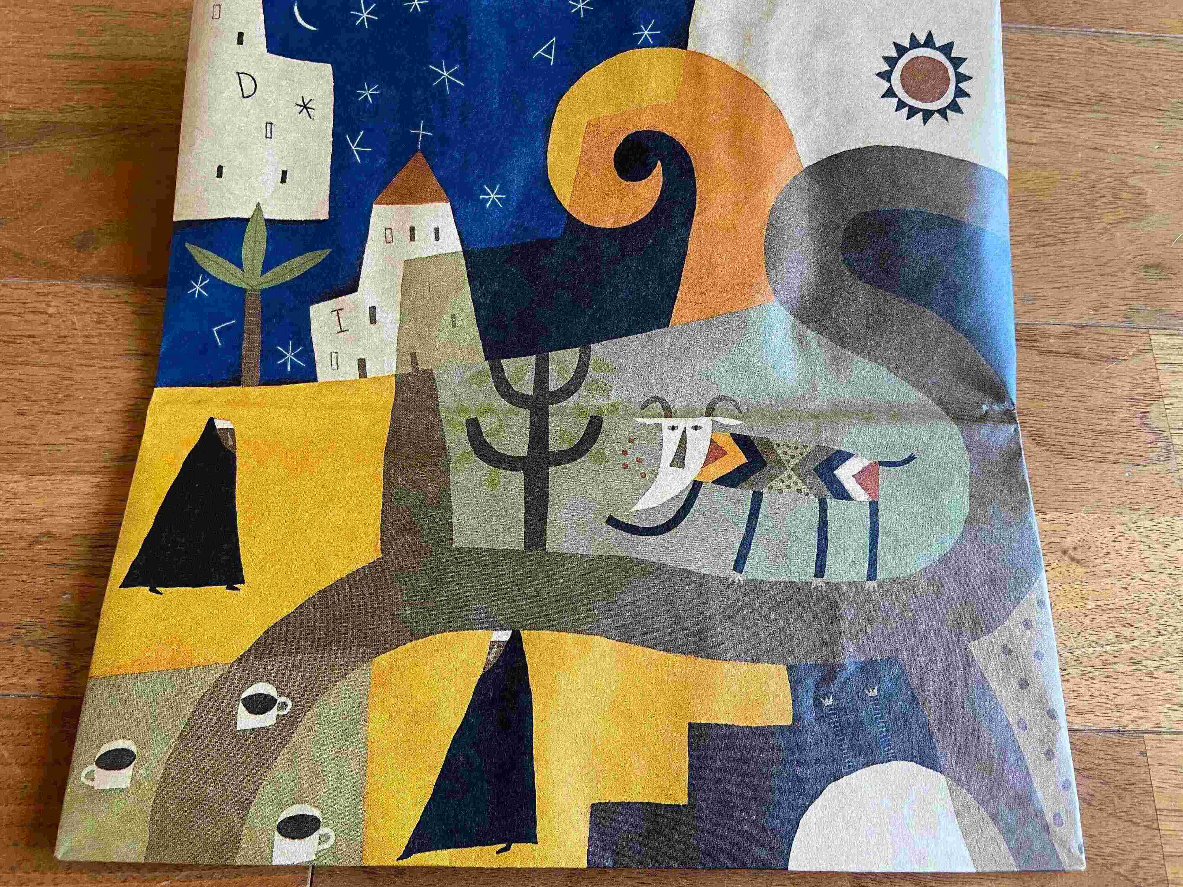 表面にはカルディオリジナルキャラクターの「ヤギべエ」もいて、全体的に落ち着いた色合いの個性的なデザインがファンの心をつかんでいます。この特徴的なデザインはイラストレーターの井上リエさんによるもので、カルディオリジナルの商品やマスコットなどの関連グッズなどにもたびたび登場しています。
