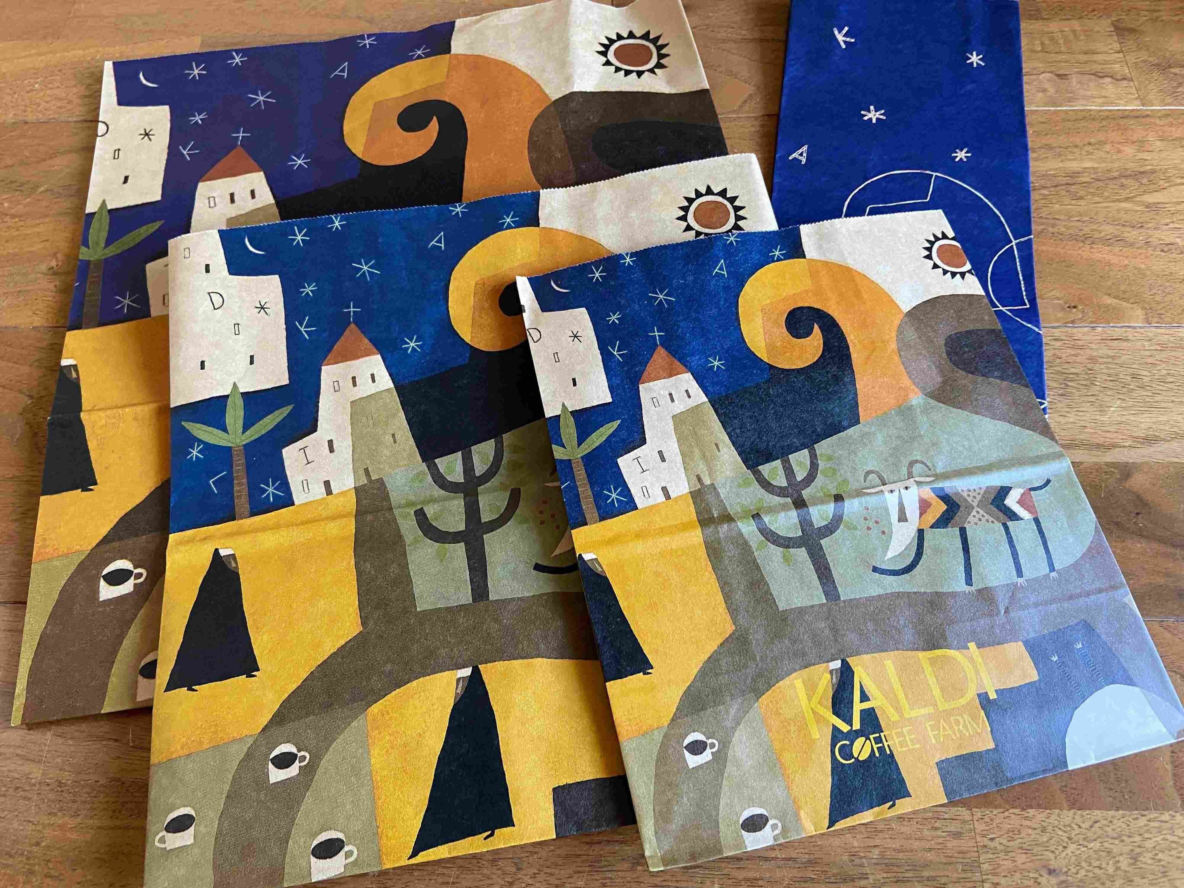 カルディの紙袋の詳細を紹介しました。他にはない魅力的なデザインと丈夫な作りで一度使ってみると使い勝手の良さにハマること間違いなし!期間限定のデザインも要チェックです。
