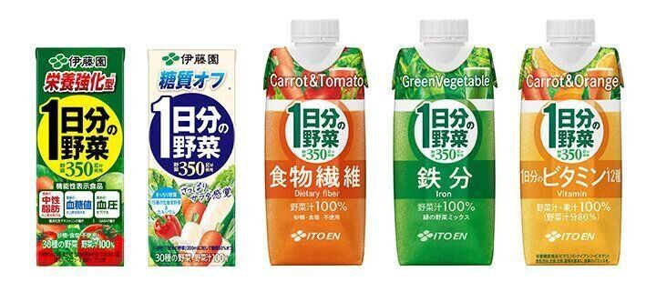 伊藤園「1日分の野菜」は、厚生労働省が推奨する1日分の野菜摂取目標量350g分を使用し、野菜350g分の主栄養成分(※3)がバランスよく摂れる野菜100%飲料です。