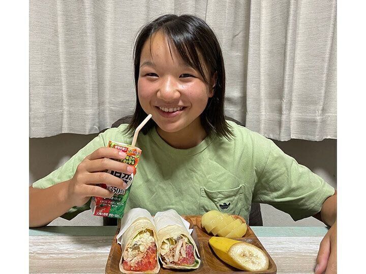 お母さまが椛さんの生活習慣で心がけているのは、「よく寝て、よく食べ、よく動く」というシンプルなモットーだそうです。アスリートが体づくりをする上でも特に大切なのが日々の食事ですが、椛さんはどのような食生活を送っているのでしょうか。
