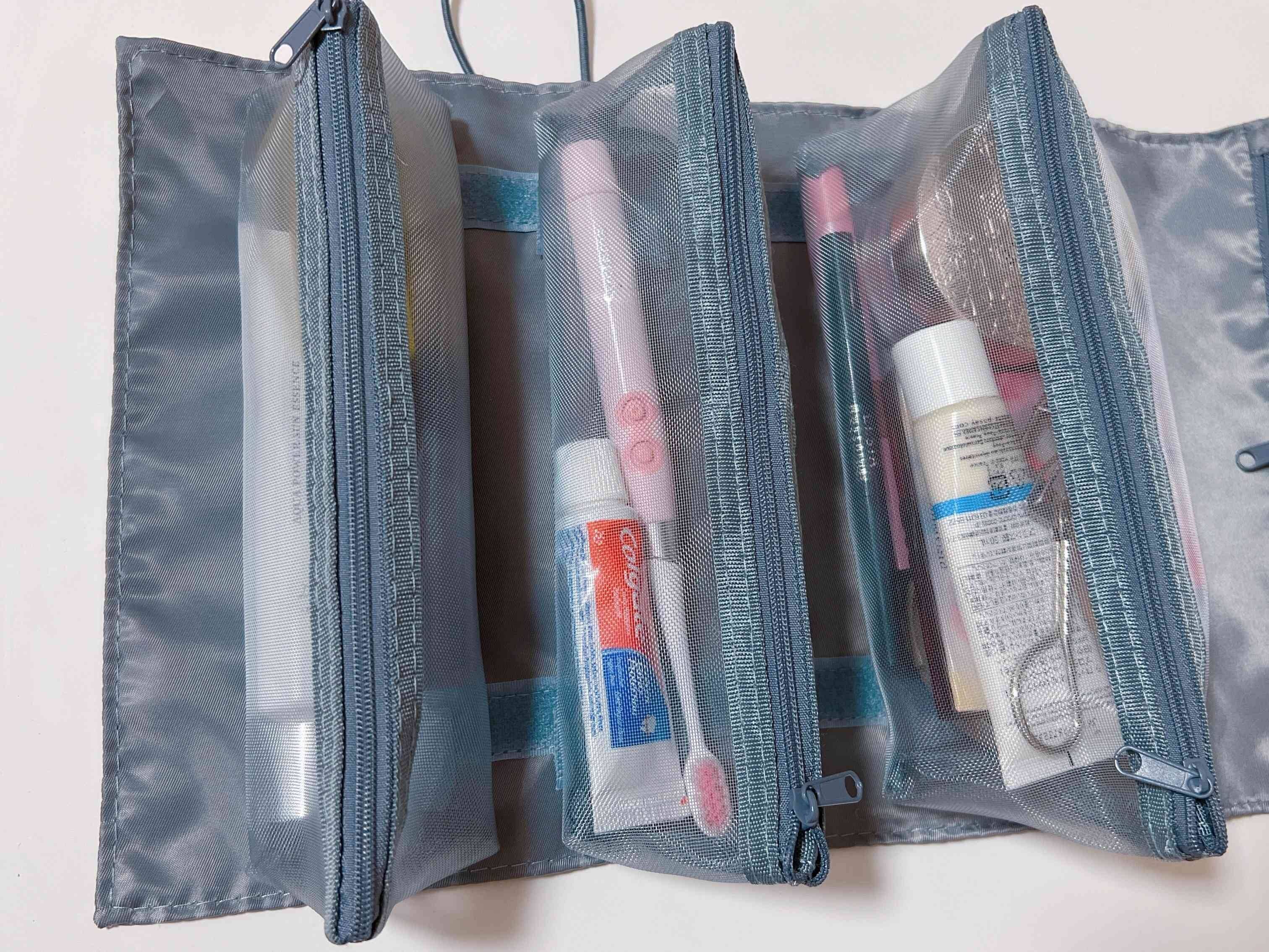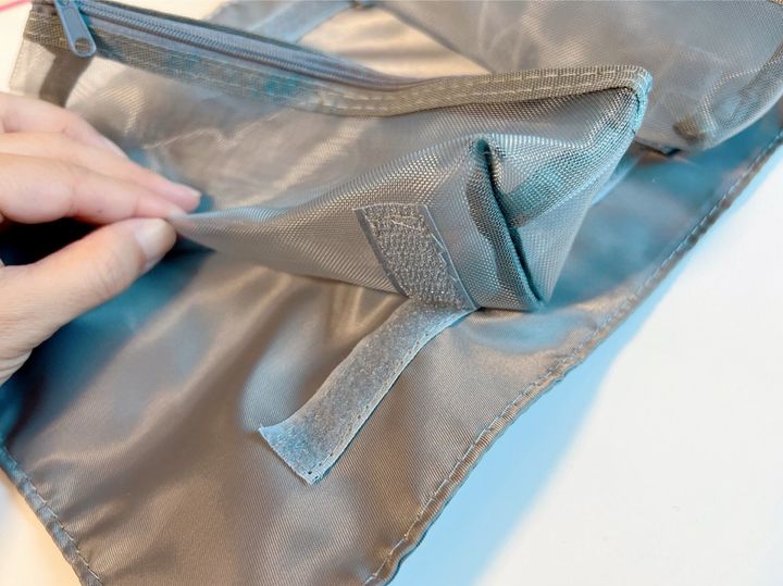 メッシュポーチはそれぞれ独立しているので、べりべりっとマジックテープを剥がして、単体で持ち運びもできちゃいます。