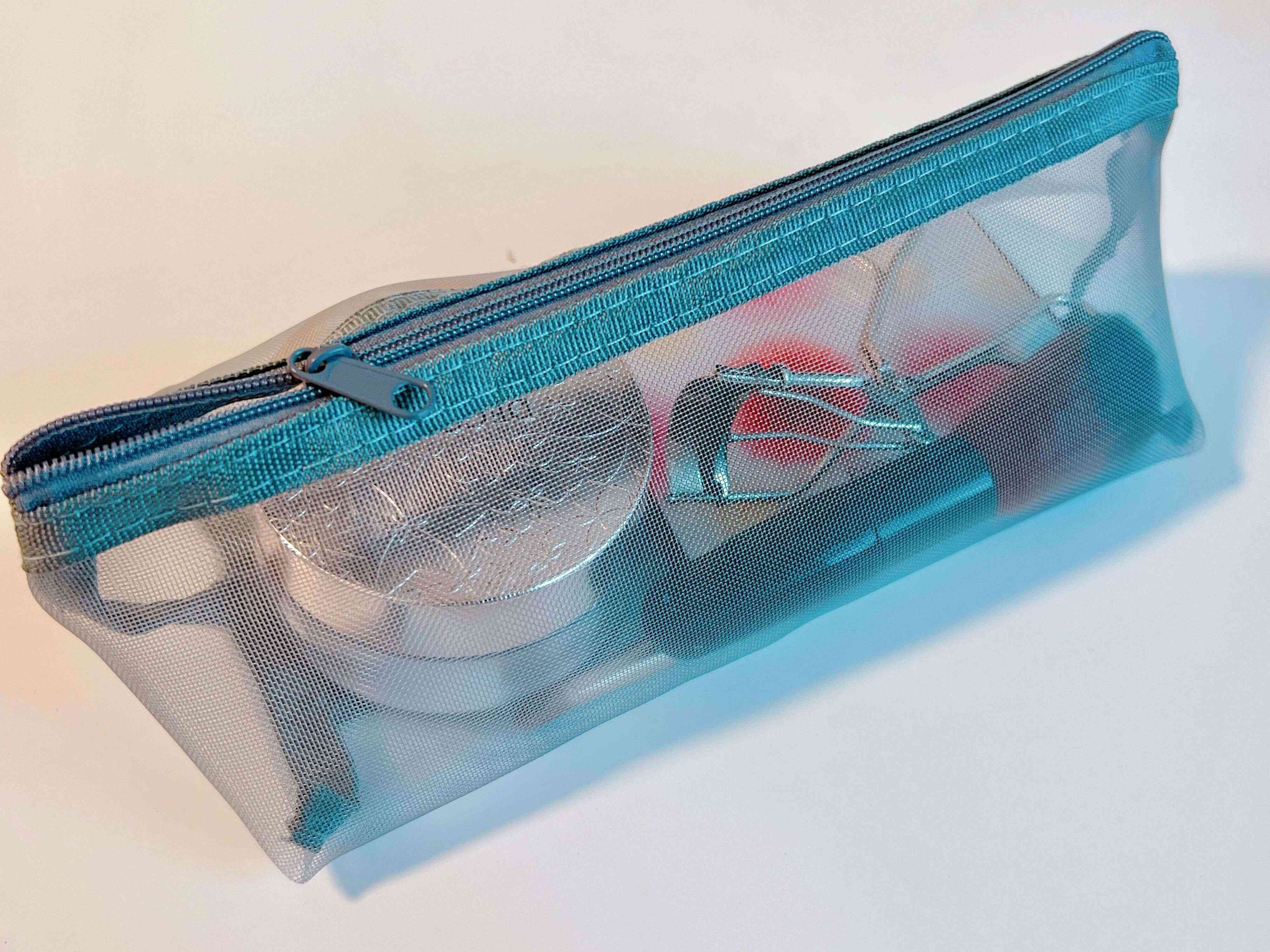 中身が見えやすいメッシュ素材で、アイテムが一目で分かります。また、メッシュ素材は通気性も良いから旅行用の洗面道具入れとしても便利。