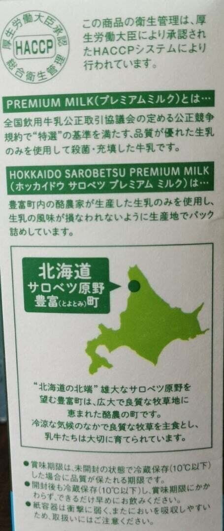 「北海道サロベツプレミアムミルク」は、豊富町内の酪農家が生産した生乳のみを使用し、生乳の風味が損なわれないように生産地でパック詰めされています。