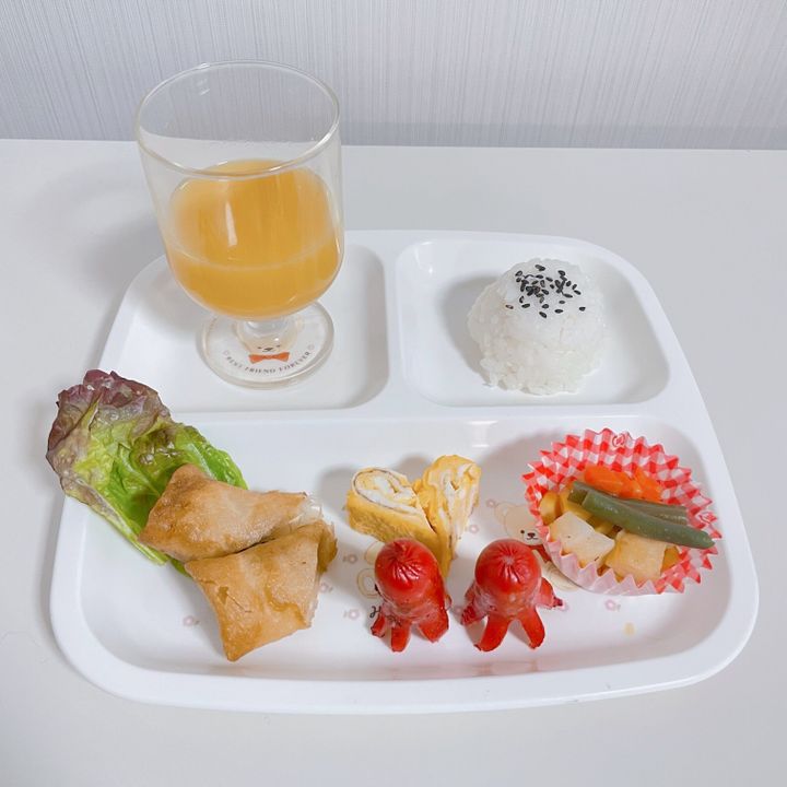 ご飯に国旗の爪楊枝を刺したり、ゼリーやフルーツなどのデザートを置いてあげると、よりお子さまランチっぽく仕上がりますよ。