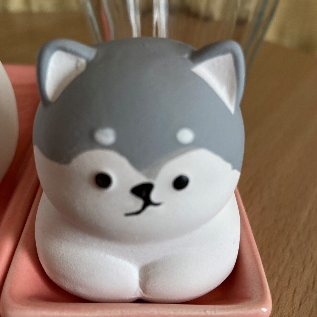 今年発売されたダイソーの「アニマル加湿ポット」は、「ハスキー(犬)」、「パンダ」、「スコティッシュフォールド(猫)」の3種類が並んでいます。