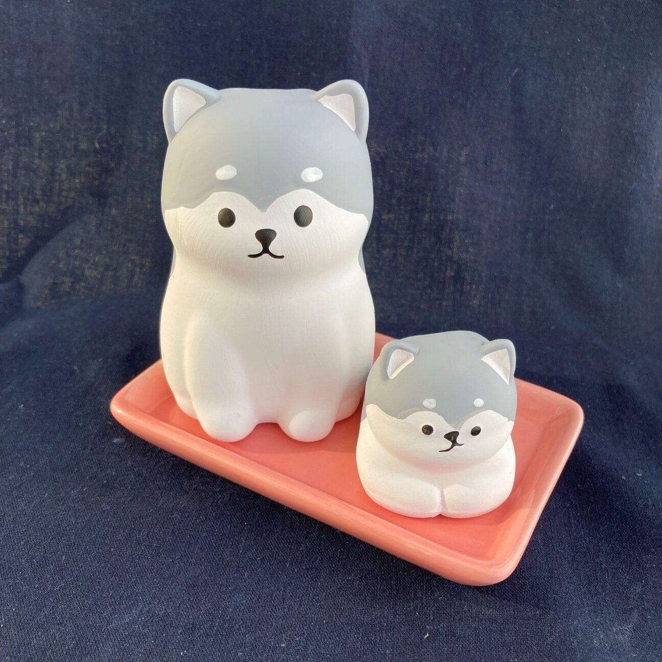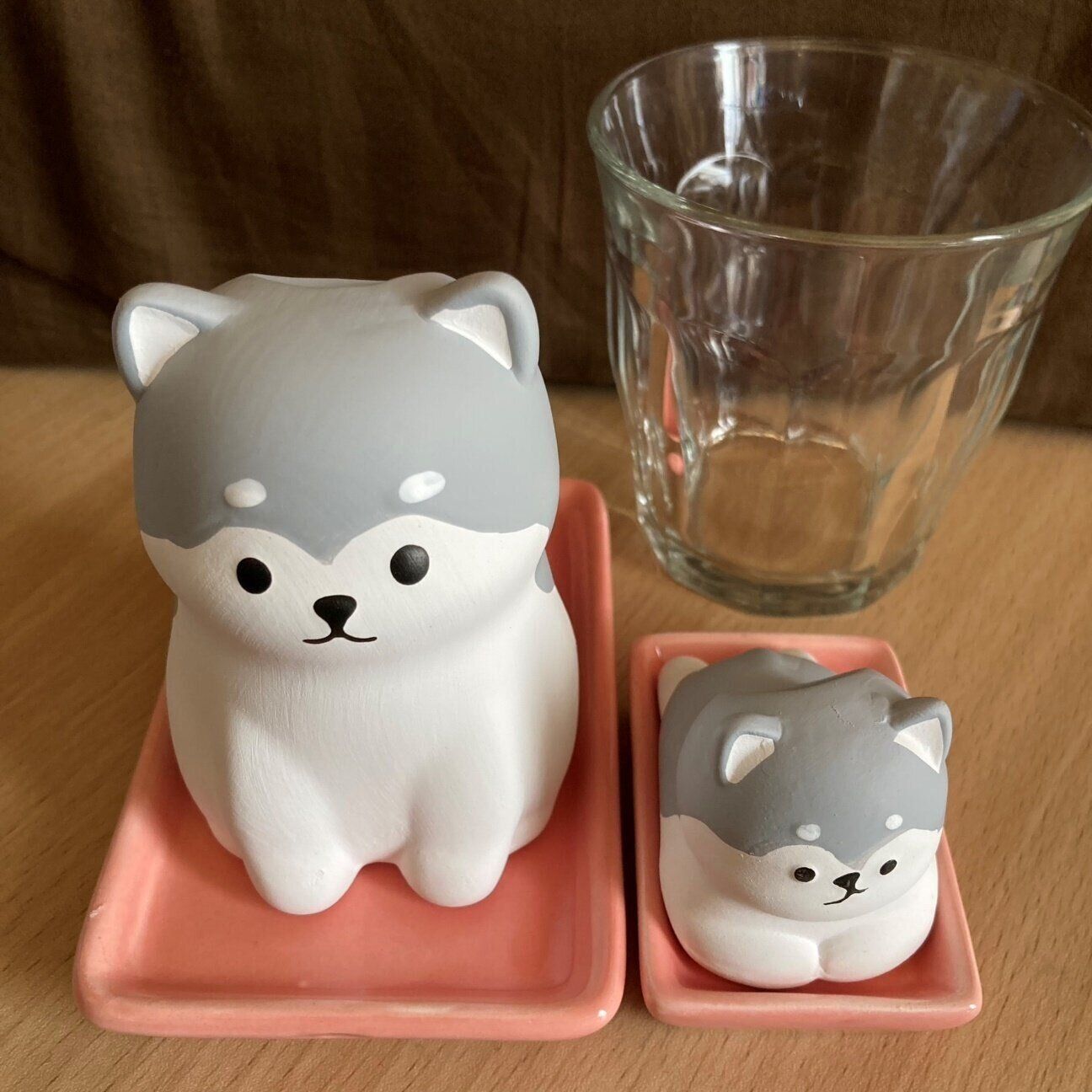 お気に入りのワンちゃんを親子セットで並べてみたのですが、よく見ると子犬の顔が変!?
