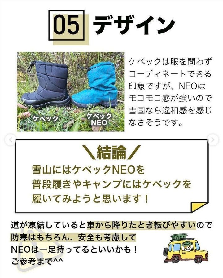 ケベックNEOには保温性の高いボール状中わたが入っていてより暖かいため、雪国の方の作業靴としてもいいかもしれませんね。雨や雪の心配がある時はケベックNEOを、普段使いにはケベックをおすすめします。