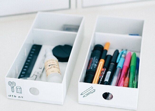 こまごました文具を大きめの引き出しに入れると、ぐちゃぐちゃになりがち。「高さがない小引き出しに1種類ずつにしたら、『あれがない』と探したり、ムダに買い足しすることがなくなりました」。