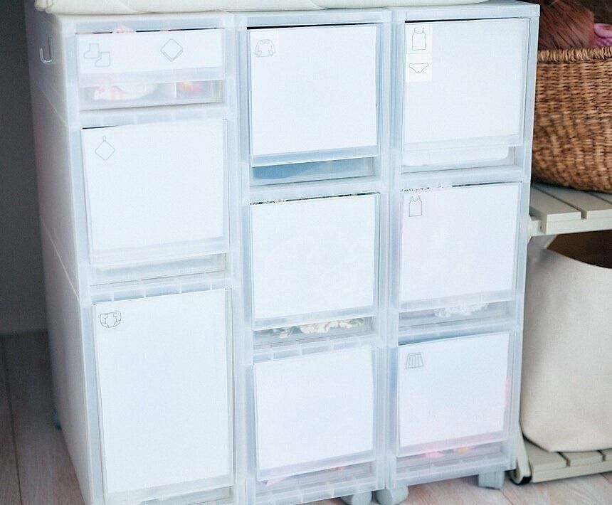 キッチンで使っていた収納ケースは子ども服入れにチェンジ