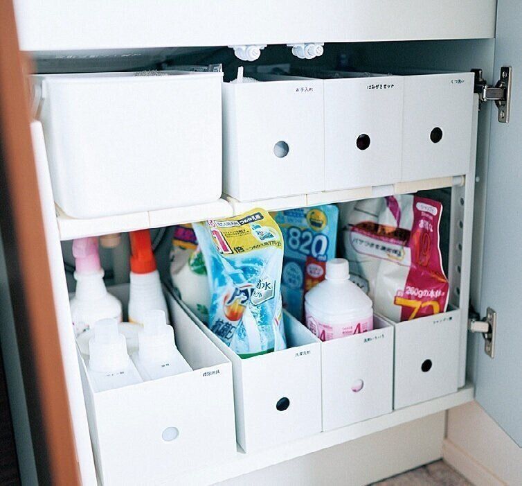 高さが同じケースに日用品を。ここに収まる量しか買わない