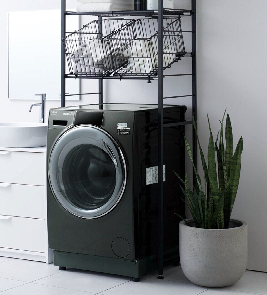 日本の家庭用では数少ない、ドラムをまっ直ぐ(=水平)配置したドラム式洗濯乾燥機。洗濯物が絡みにくく、ムラを抑えてしっかり洗え、本体サイズもコンパクト! 今っぽいダークカラーもGOOD。