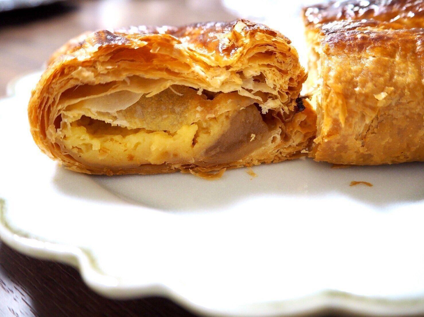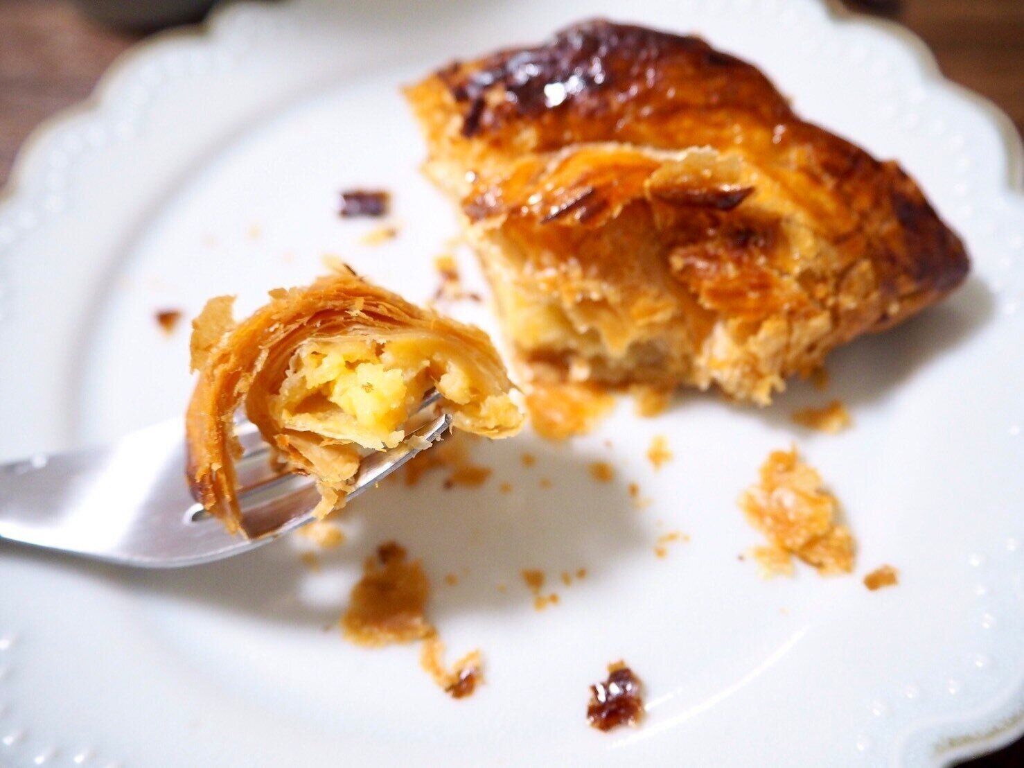 パイ生地の食感はサクサクしているのにしっとり感もあり、パイ生地をひとくち食べただけで2つの食感。