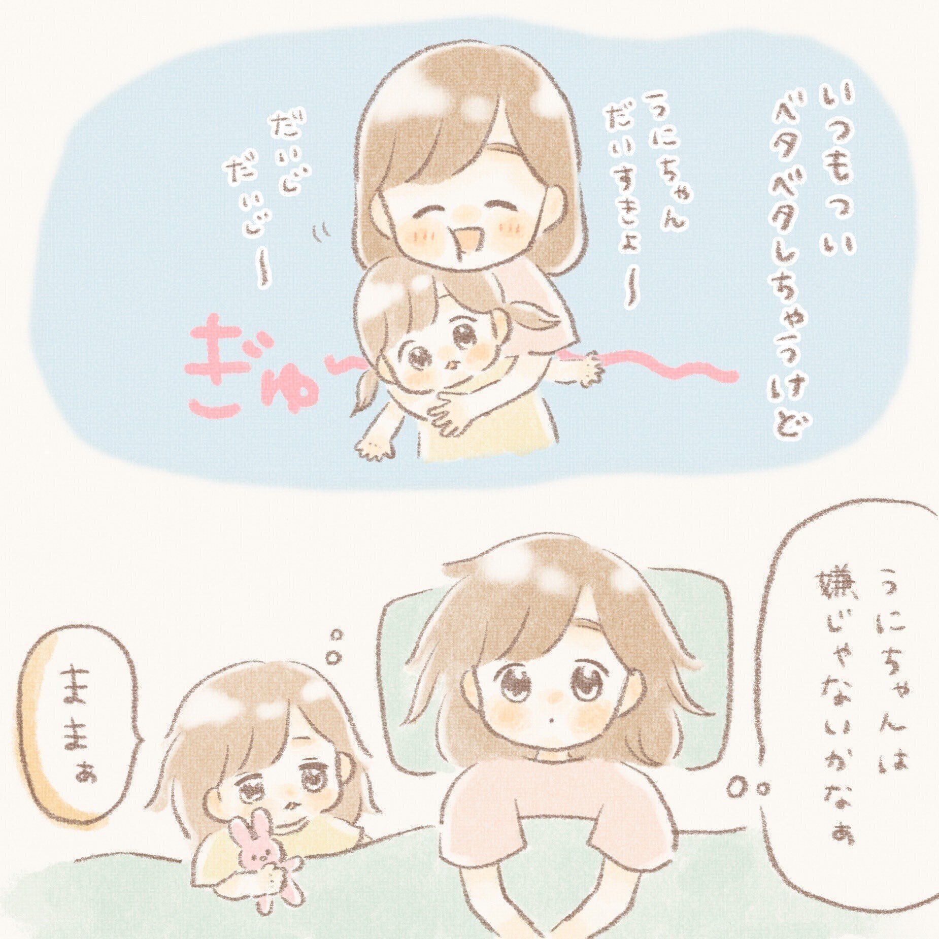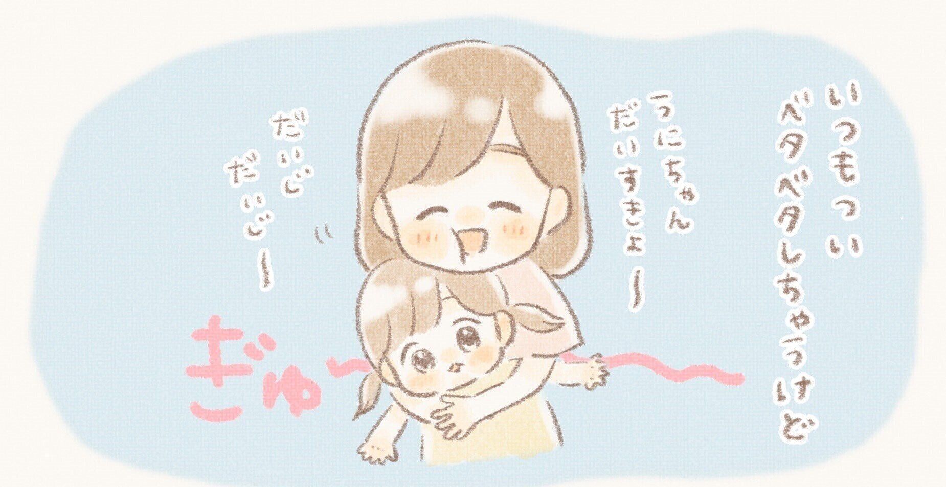 「『もっとだいぢに〜!(もっとぎゅーして!)』のあとはいっぱいぎゅっとして嬉しそうにしてくれました。そのまま夜眠るときもあります」