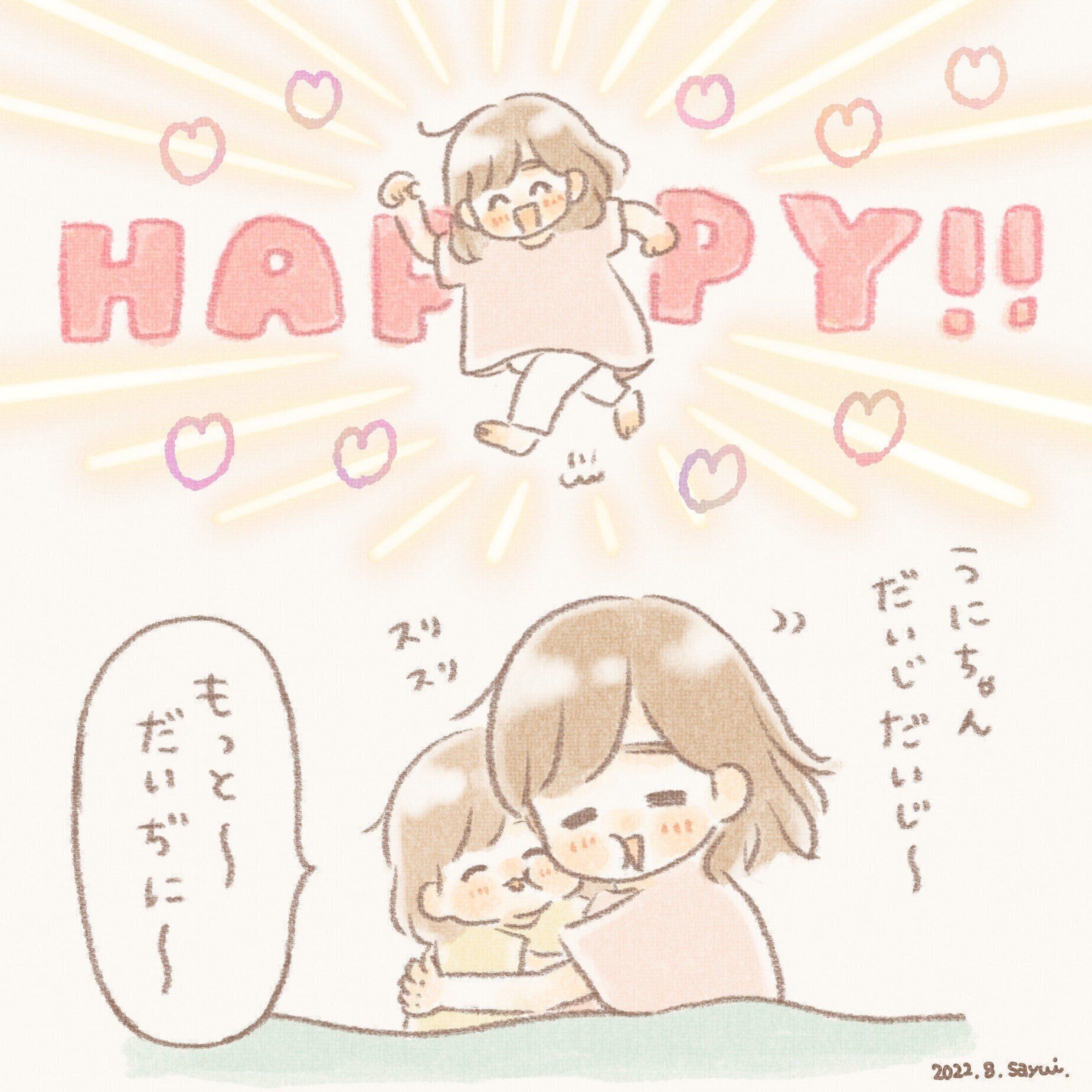 うにちゃんももちろんかわいいですが、最後のコマの「HAPPY」なママもとってもかわいくて癒されました!さゆいさんはいつもどのようなタイミングで「だいじ だいじ」なさっていますか?