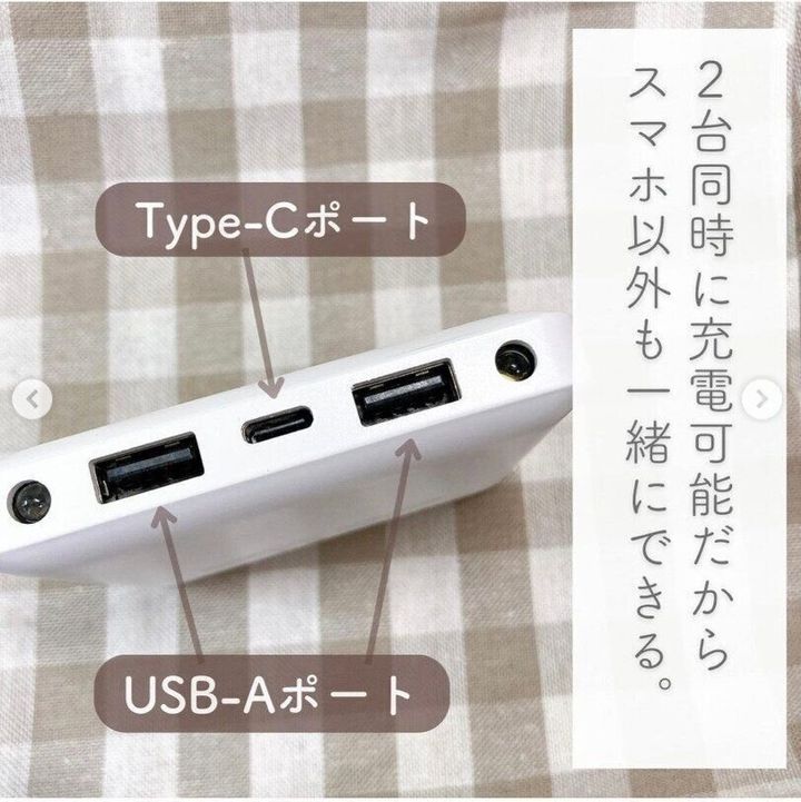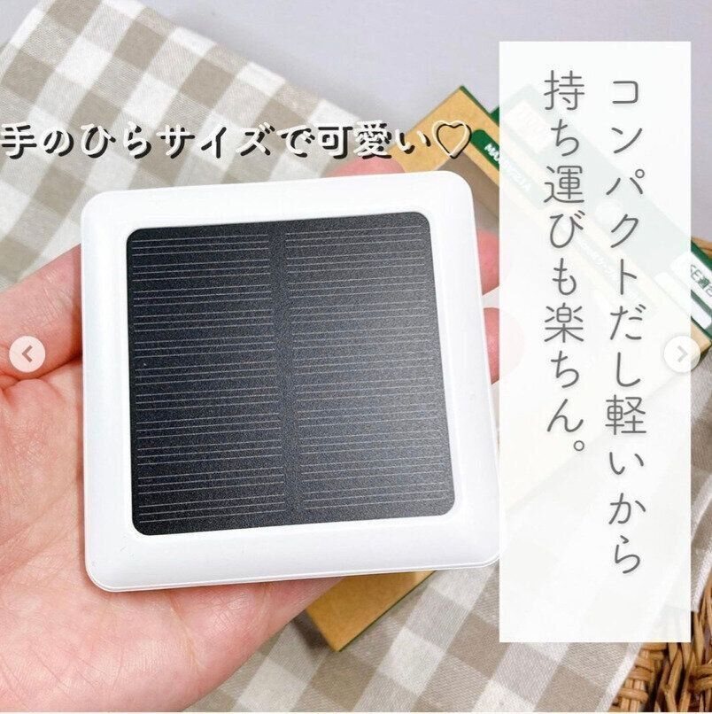 コンパクトで持ち運びしやすく、ソーラーパネルで充電ができるこちらのモバイルバッテリー(1,100円)。同時に2台充電ができる優れものです。横のライトで電池残量もチェックできるので安心。LEDライトもついていて、災害時に備えて1つ持っておきたいアイテムですね。
