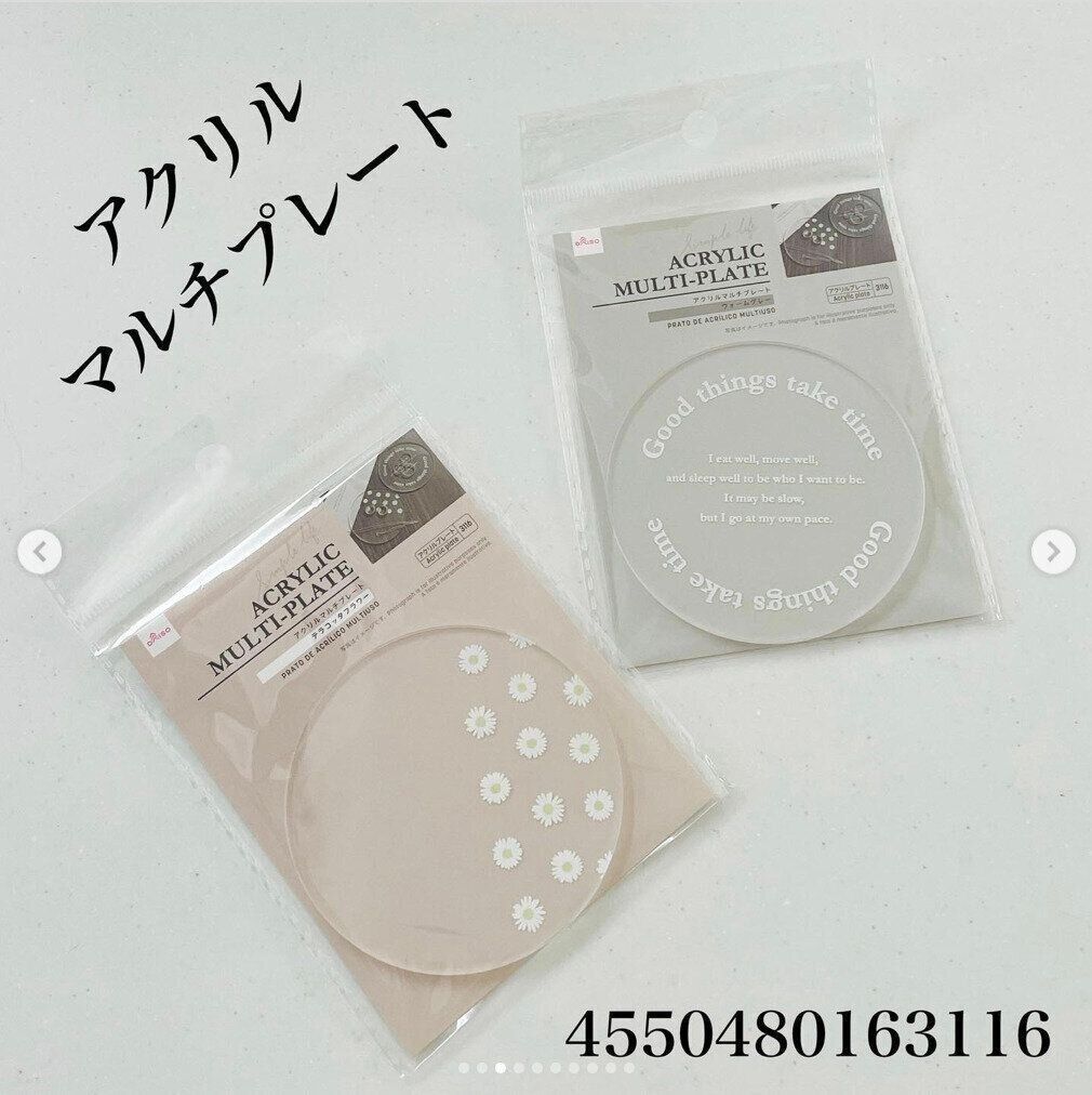 英字とお花がプリントされた、直径8cmのとってもおしゃれな110円で買えるプレート。この上にアクセサリーを載せるだけで一気に素敵な空間になりますよ。透明なので、下にカラー用紙を挟んでみたり、布を敷いてみてもいいですね。