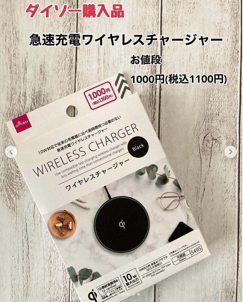 ダイソーで1,100円で買える、急速充電ワイヤレスチャージャー。ポンと置くだけで充電が開始され、10W対応で、従来の充電器に比べ長時間待つ必要もありません。充電中はライトがつくのでわかりやすいです。ホームページやパッケージで、まずは対応機種を確認してみてくださいね。