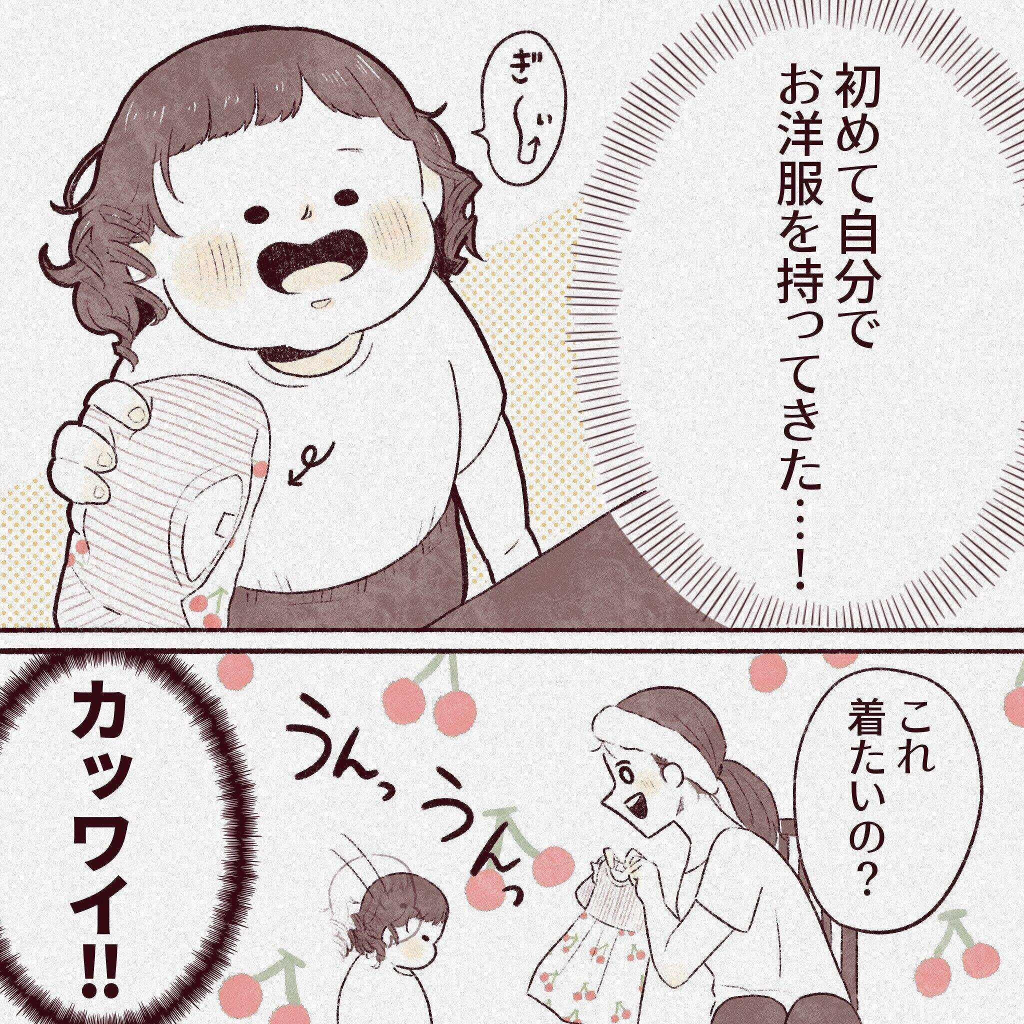 そのうえ、たすこさんの「これ着たいの?」という問いかけに「うんっうんっ」と思い切り首を縦に振ります。