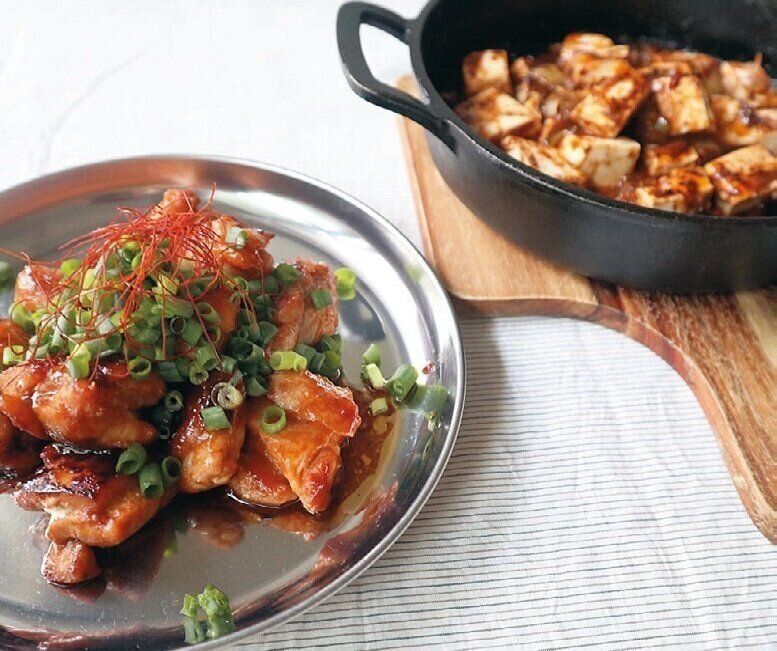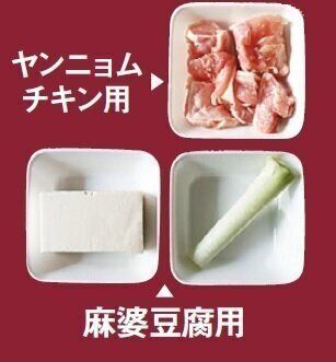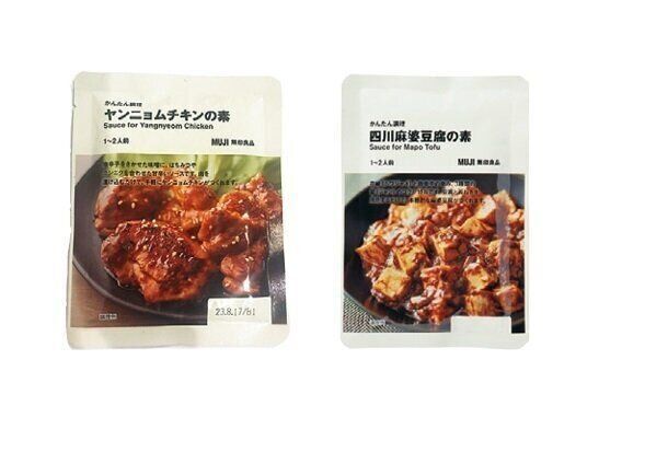 「かんたん調理 四川麻婆豆腐の素」「同 ヤンニョムチキンの素」各(1~2人前)各¥190