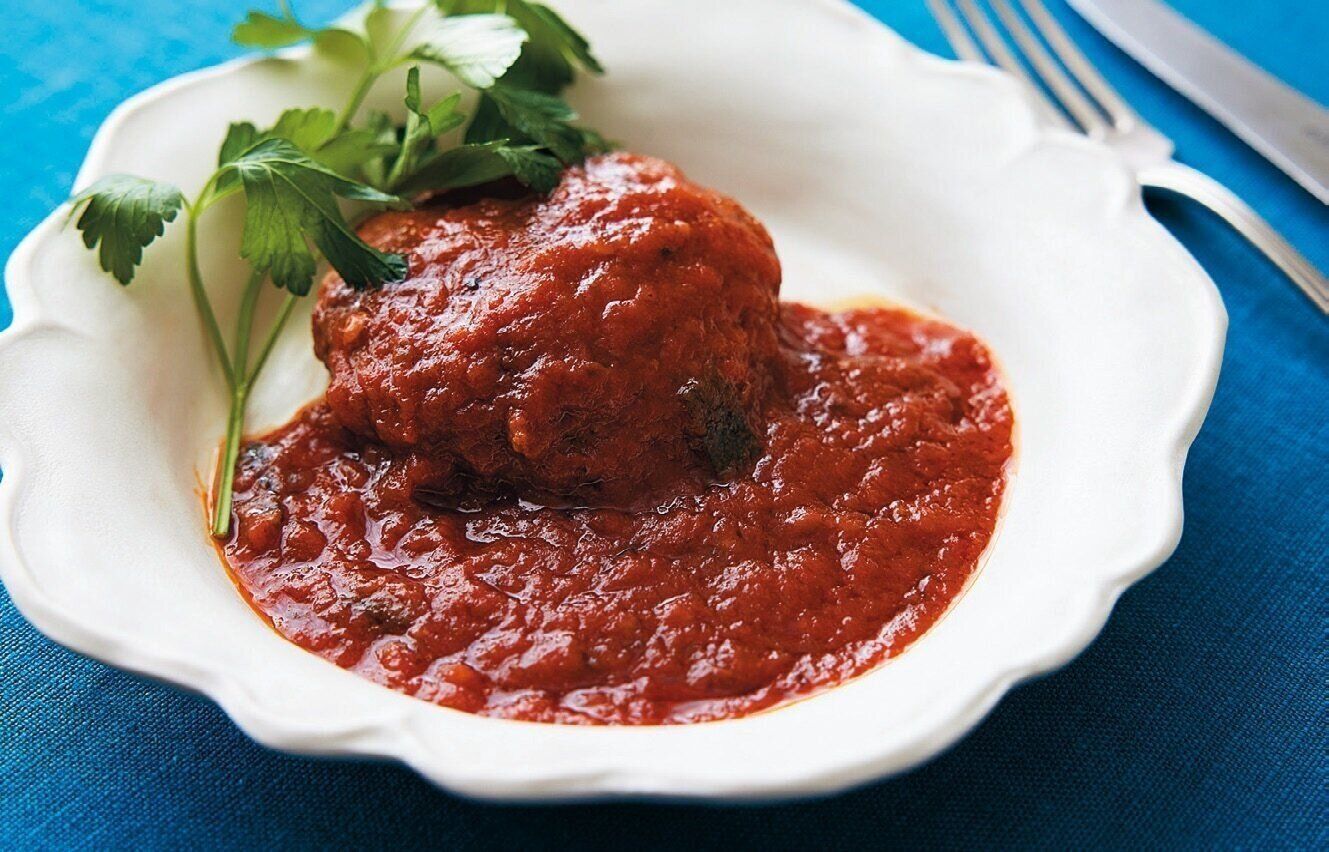 「素材を生かしたお惣菜 トマトの煮込みハンバーグ」(1人前)¥350