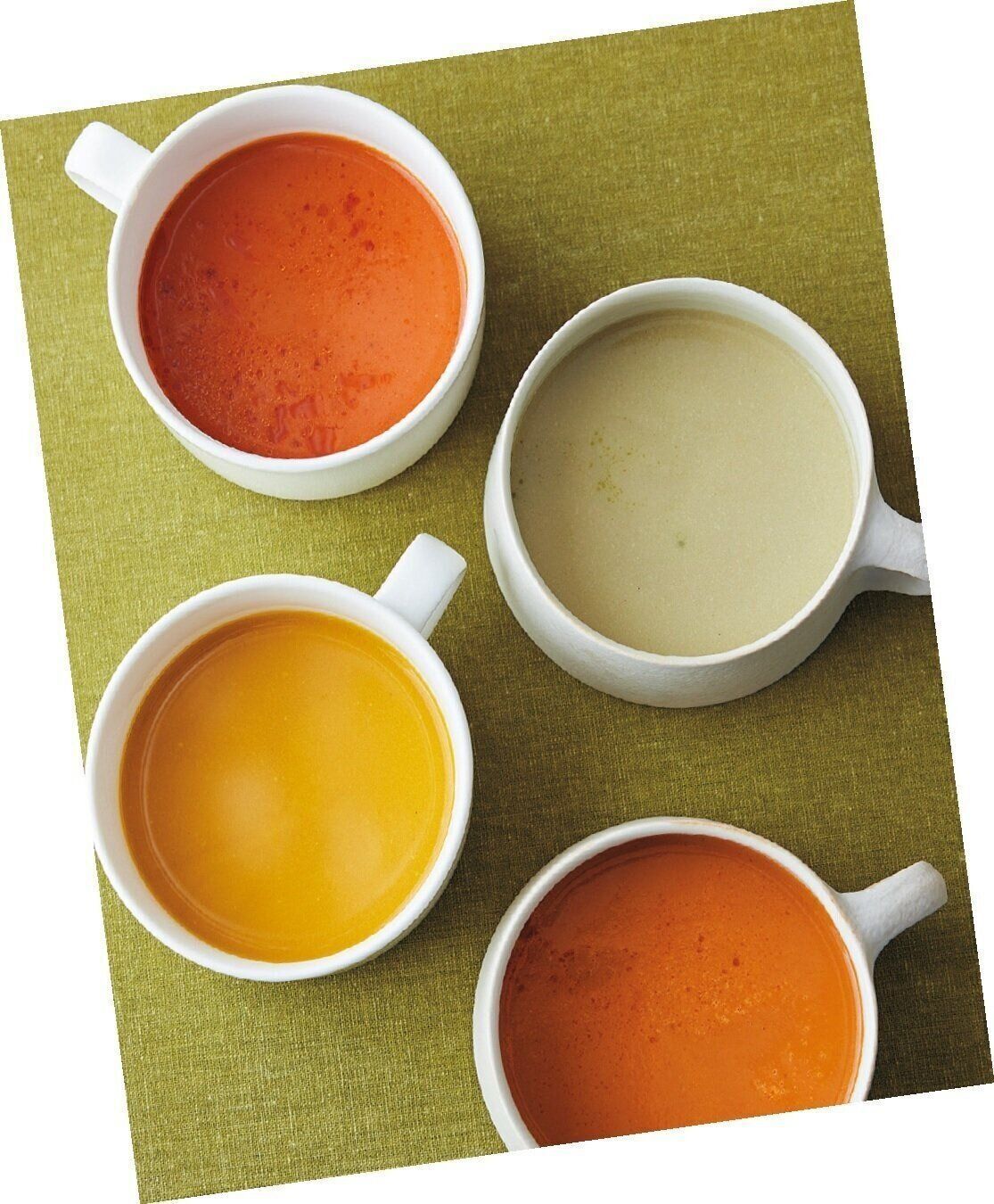 (上から)「素材を生かしたスープ 海老のビスク」、「同 枝豆のポタージュ」、「同 かぼちゃのポタージュ」、「同 トマトのポタージュ」(各1人前)各¥250