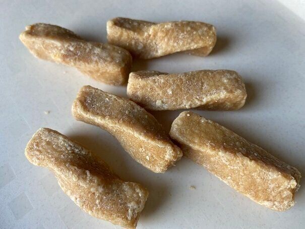 珍しい薄い四角形の形をした「北海道小樽のかりんとう 蜂蜜味」(購入時:213円)は、普通のかりんとうとひと味もふた味も違うおすすめの一品。