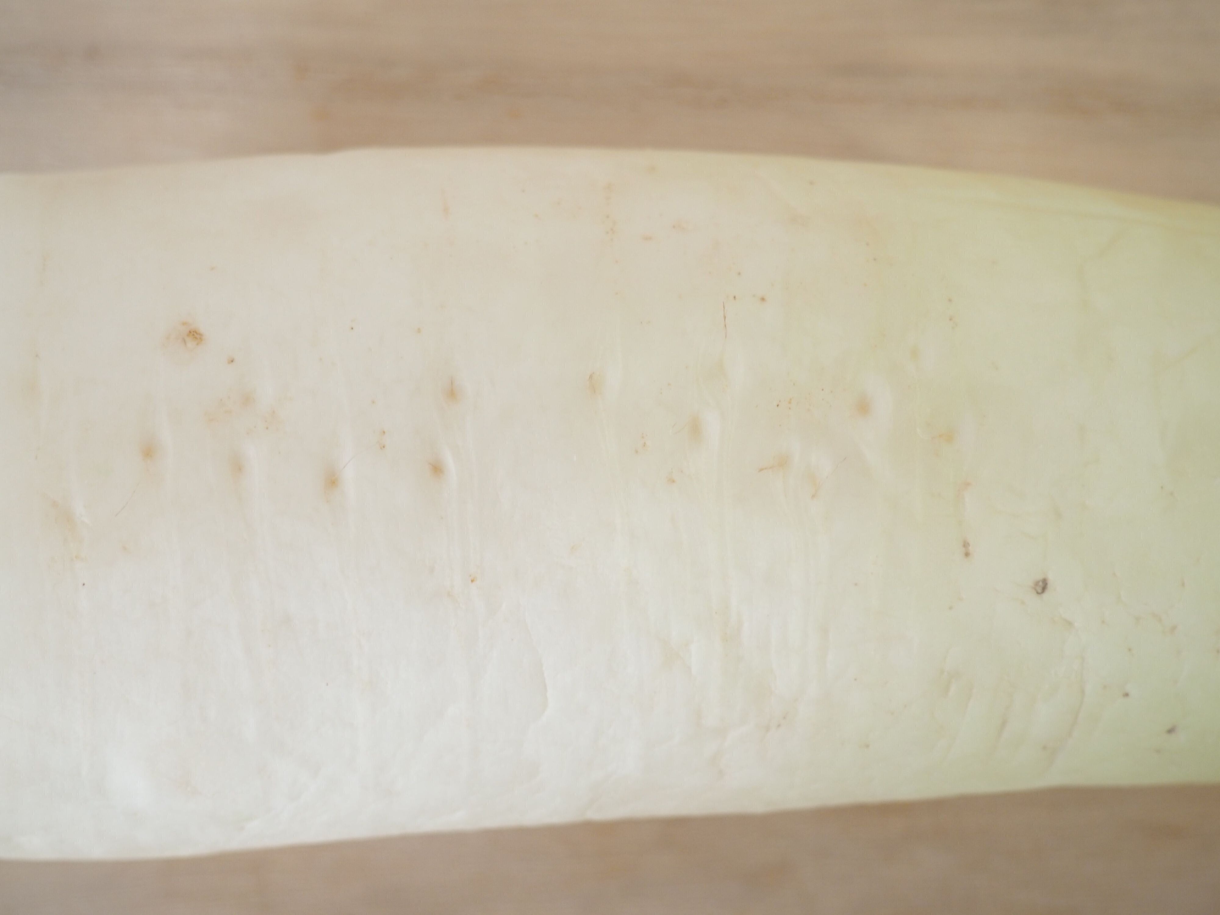 使用するのは、お味噌汁の具材にしようと思って購入したこちらの大根。使い所がなく、しばらく冷蔵庫で保管しているうちに、ふにゃふにゃになってしまいました…。