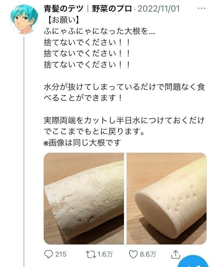 ふにゃふにゃになった大根を捨てないで!と力強く訴えていました。