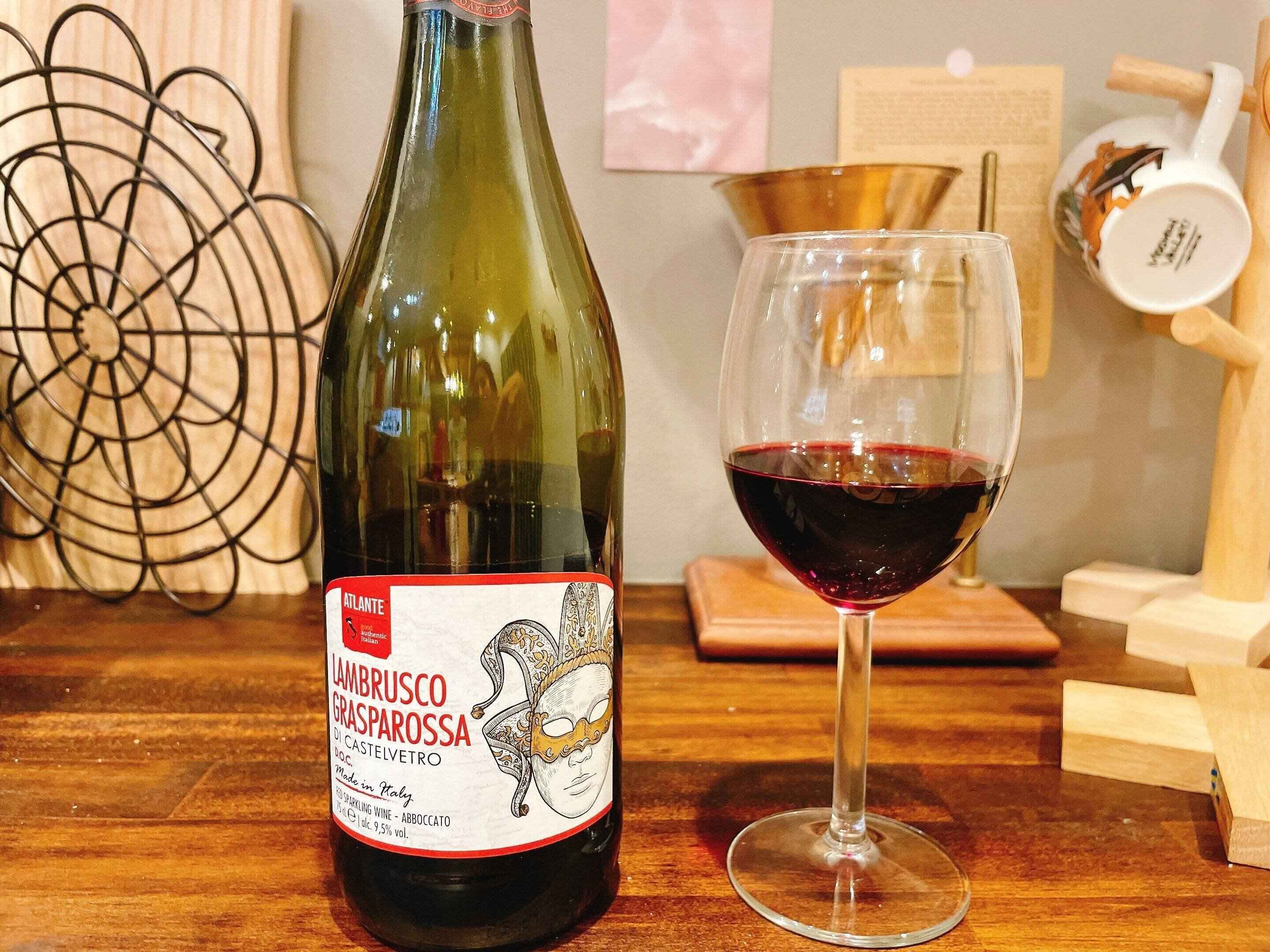 炭酸が弱めの赤ワインなのですが、イタリア製で重い感じはせず、さっぱり飲みやすいワインです。