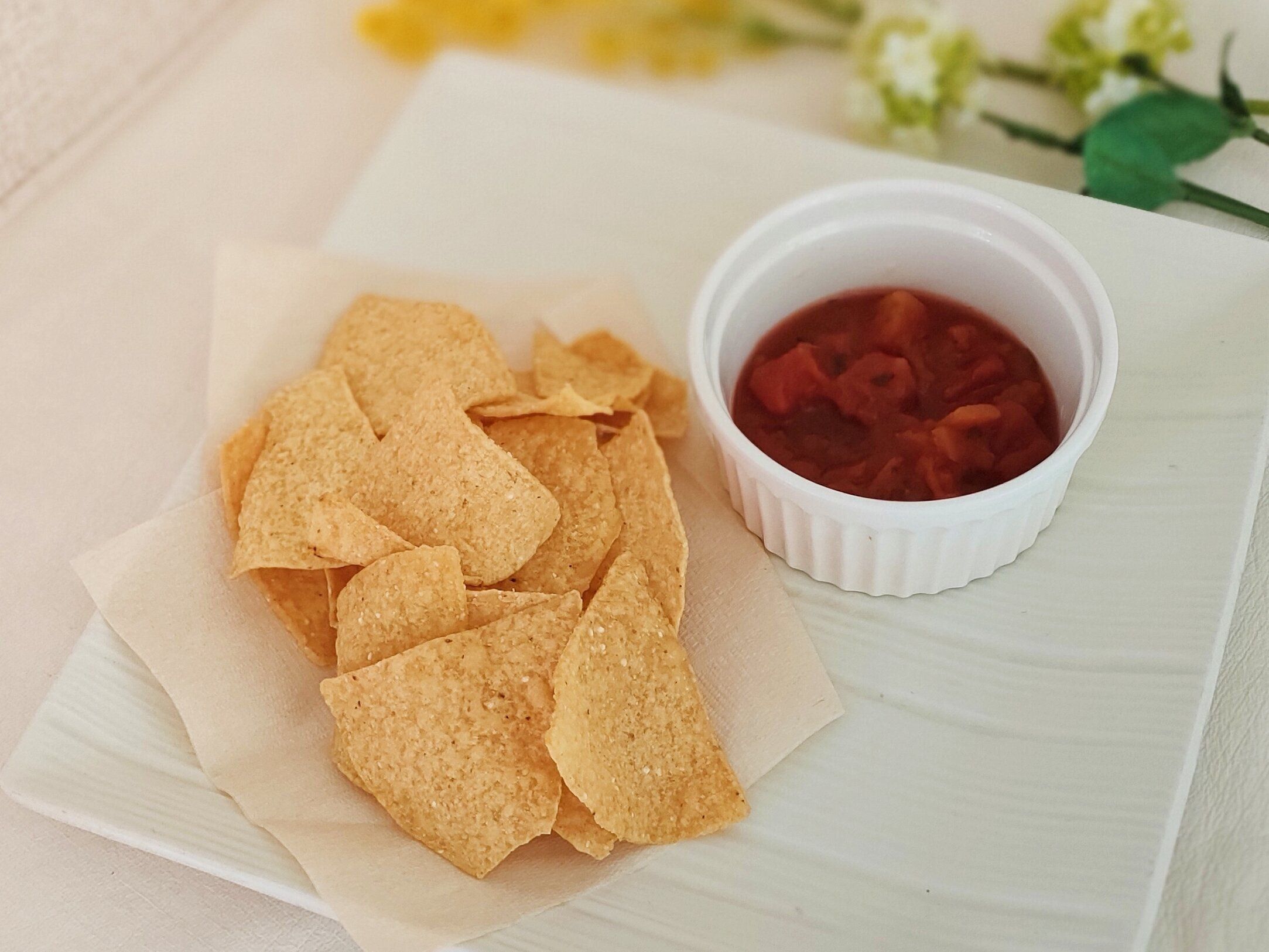 シンプルなチップスとさっぱりしたサルサソースがベストマッチで、バランスのとれた味わいです。