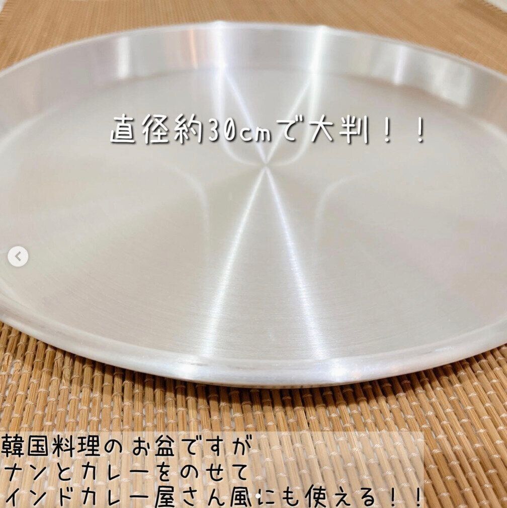 まるで韓国の屋台に行ったような気分になれるアルミのお盆が、3COINSではなんと330円で買えちゃいます。ステンレスやメラミンの食器と組み合わせれば、おうちでも手軽に韓国を楽しめますよ。インド好きなかたは、カレーとナンを載せて、インド気分を味わってみてもいいかも!