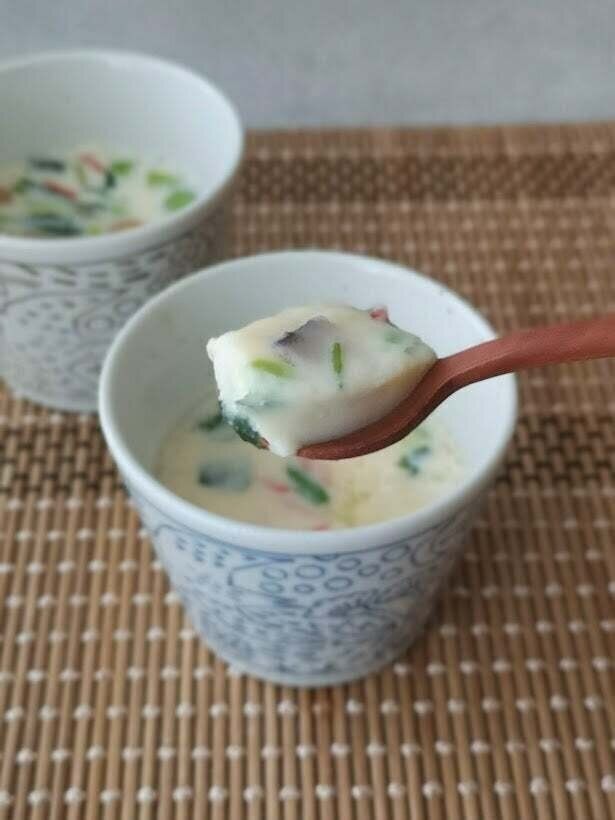 出来上がった茶碗蒸しは、とても即席で作ったとは思えないほど本格的なお味で、ぷるんっと口の中でとろけます。