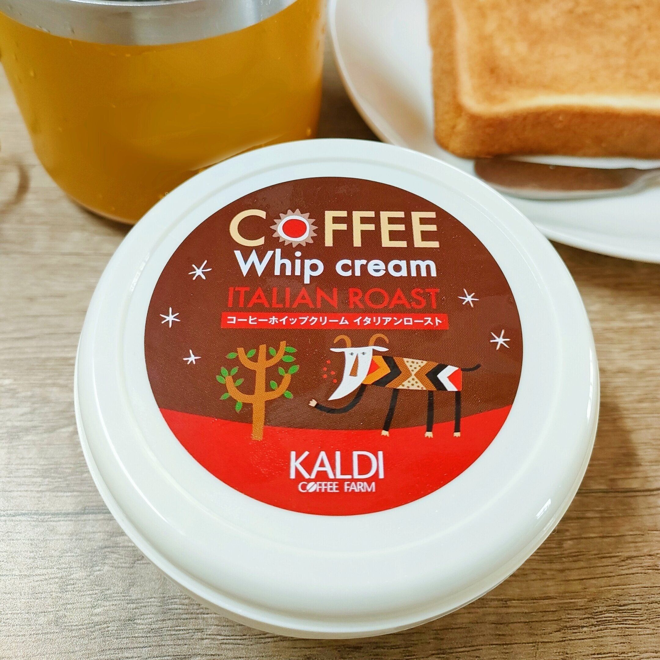 こちらがカルディオリジナルである「コーヒーホイップクリーム イタリアンロースト」313円です。