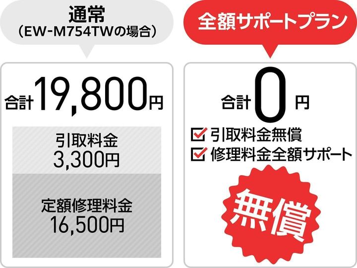 プリンターは使用頻度が増えていくと故障したり、子どもが小さいときは落としてしまうなどトラブルも多くなりがち。エプソンならプリンターを長く大切に使えるように、5年サポートサービスがあるから安心。「全額サポートプラン」なら修理代金を全額サポート! 引き取りも無償で行っているので万が一のときも安心です。