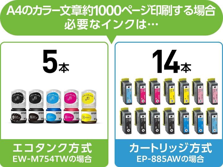 エコタンク方式のプリンターならインク代のストレスなし。サステナブルな暮らしにもつながる