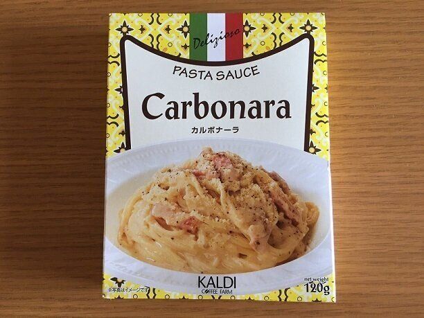 シンプルな材料ですが家庭でクリーミーに仕上げるのはなかなか難しいカルボナーラ。カルディのカルボナーラソースはレトルトパウチごと熱湯で5分ほど温めて、茹でたパスタに和えるだけ。
