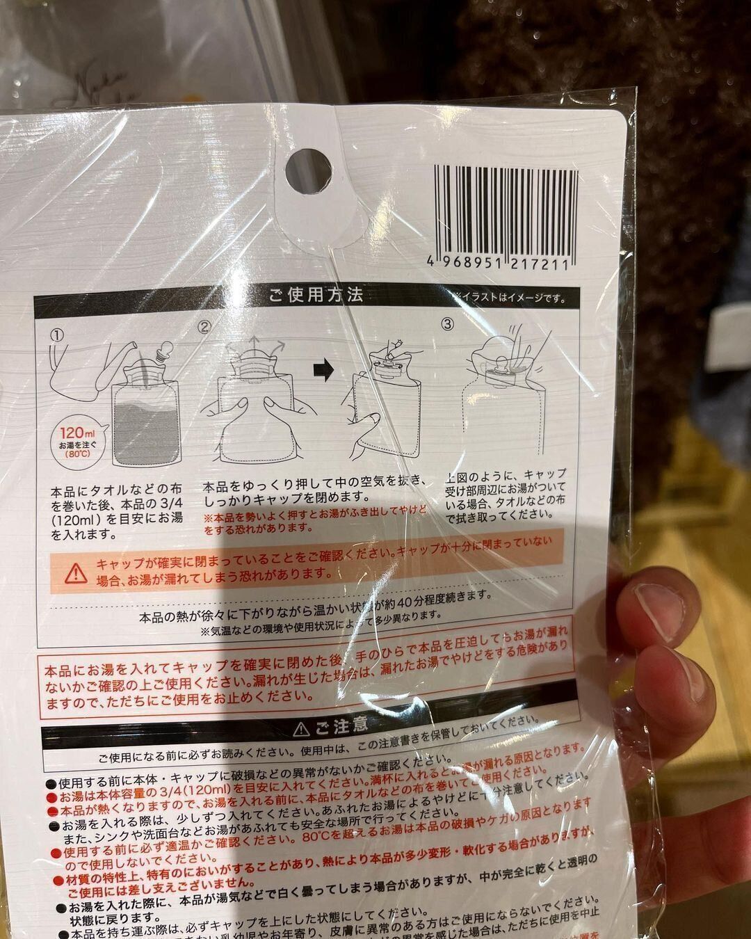 使い方は簡単。本品にタオルを巻いて120mlのお湯を入れ、キャップを閉めれば完成。ソフトタイプなのでお腹にあてるのにも最適です。