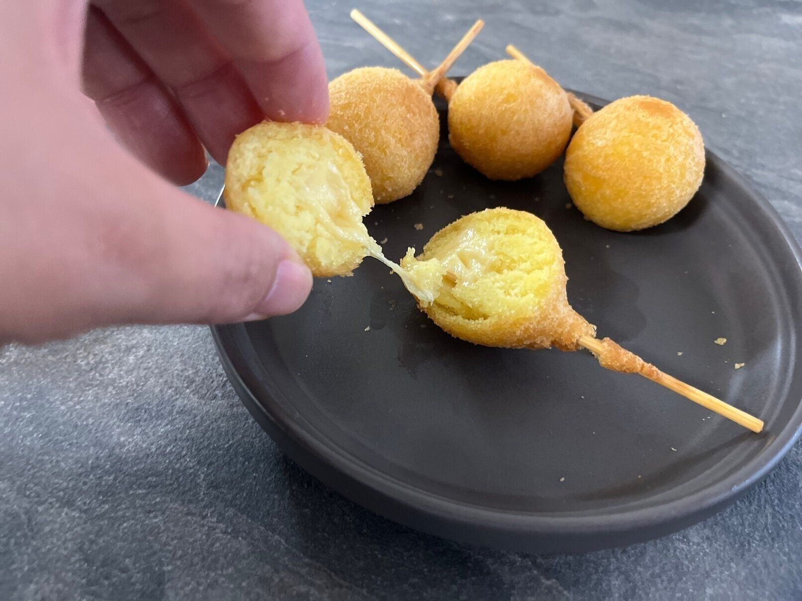 甘めの生地のほくほく食感にとろ~りチーズが入っていて、大人から子どもまで楽しめる味です。まんまるなフォルムもかわいいですよね。