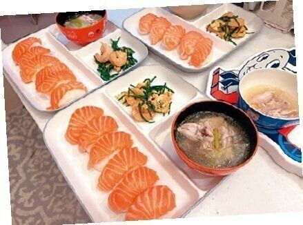 これを目当てにコストコに来る人も多い高コスパなサーモン。「購入当日は、子どもたちはおすしとして、大人はわさびじょうゆでお刺し身として食べ、残りは小分け冷凍しています」。