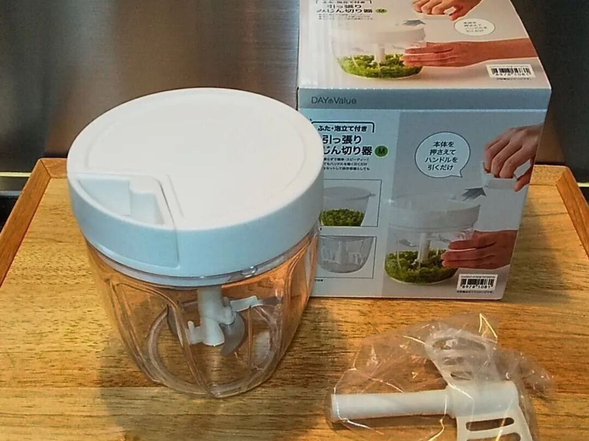 包丁いらずで、簡単にみじん切りができる「引っ張りみじん切り器2(Mサイズ ふた・泡立て付き)」。野菜を入れてハンドルを引くだけで、みじん切りができあがります。さらに、なかのパーツをかえると、泡だてやミキサーとしても使えるすぐれもの。フタをセットすれば、このまま冷蔵庫で保管することもできますよ。値段は、999円となっています。