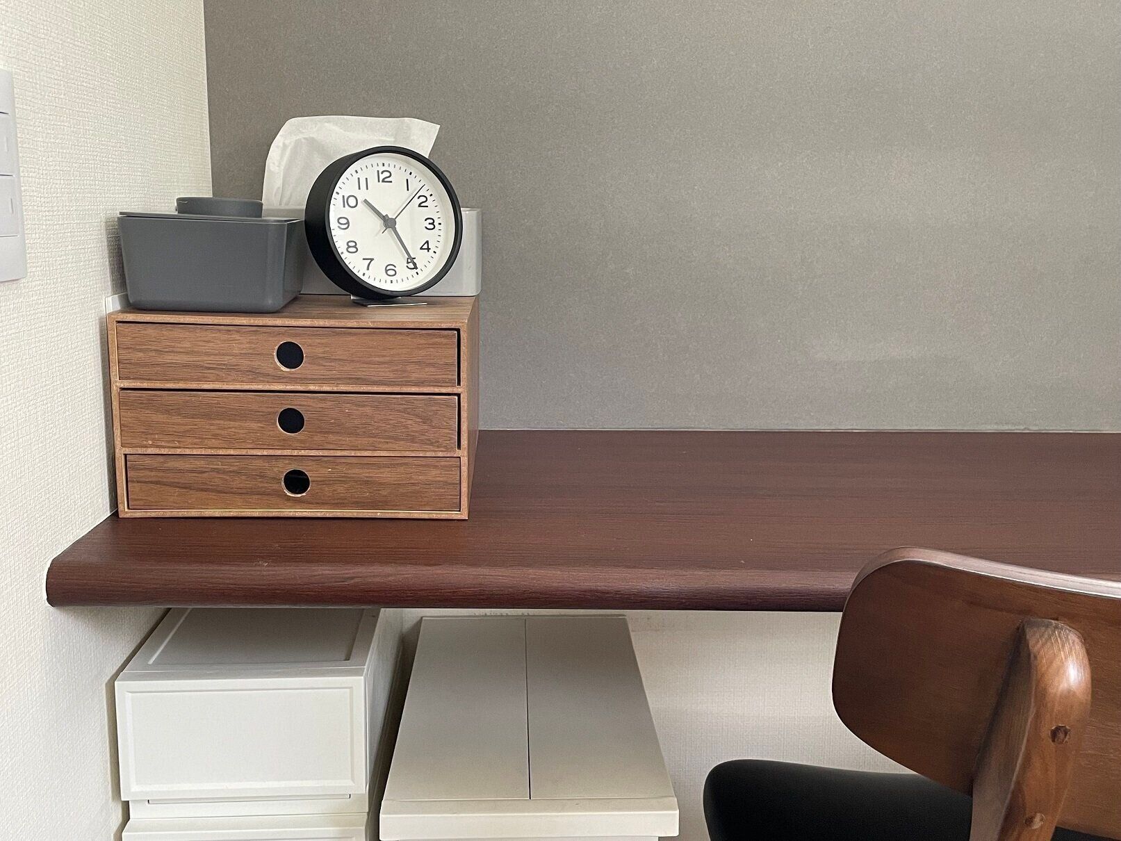 必需品のマスクも引き出しに収納することで、お出かけ時にサッと取り出しやすく、かつきれいに収納を整えられます。