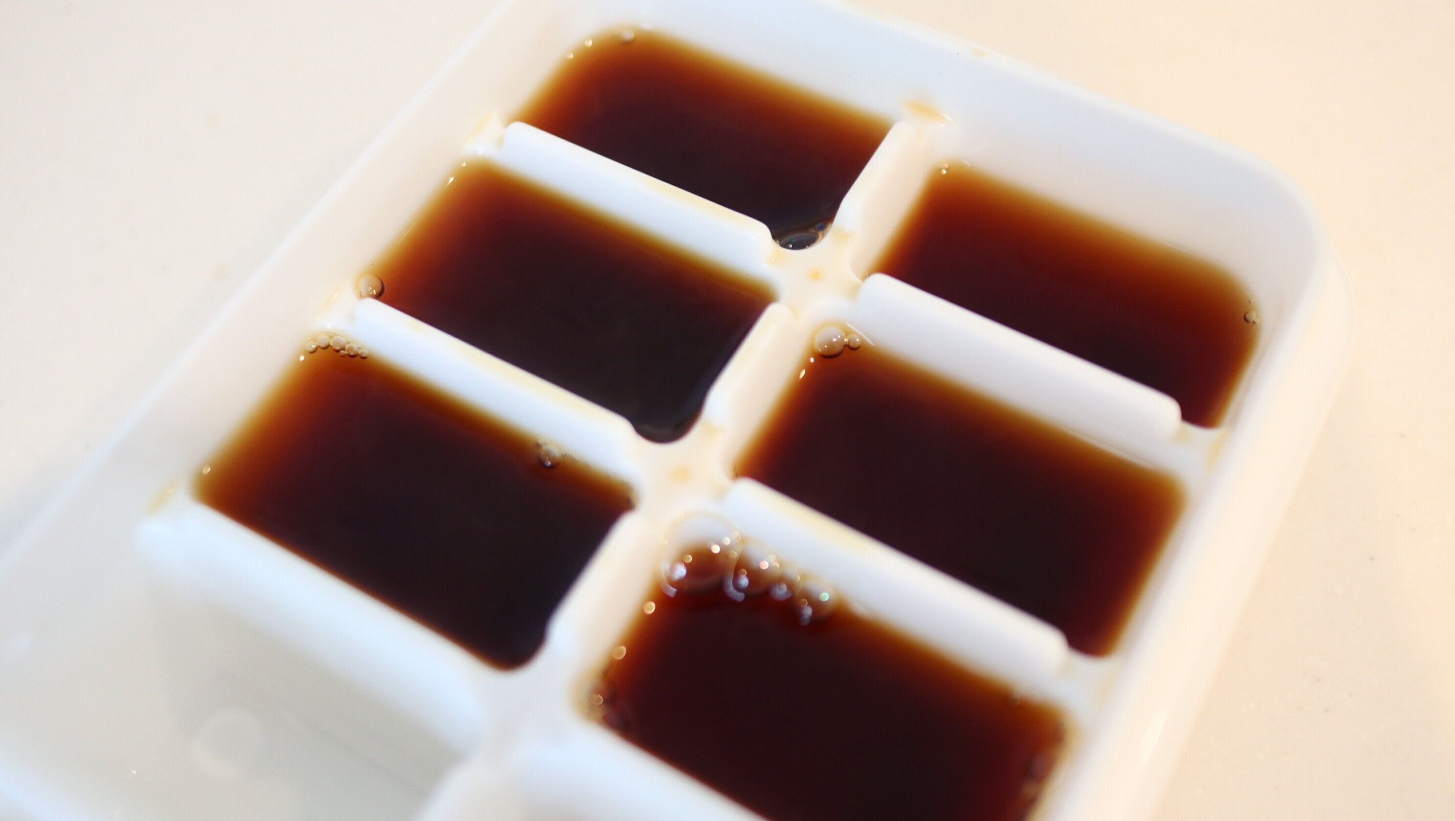コーヒーは、インスタントでもドリップでもどちらでも構いません。淹れたコーヒーを製氷皿に流し込んでいきます。カチカチに固まったら完成!(製氷皿めいっぱいに入れると取り出しづらいので、8~9分目くらいにされることをおススメします!)