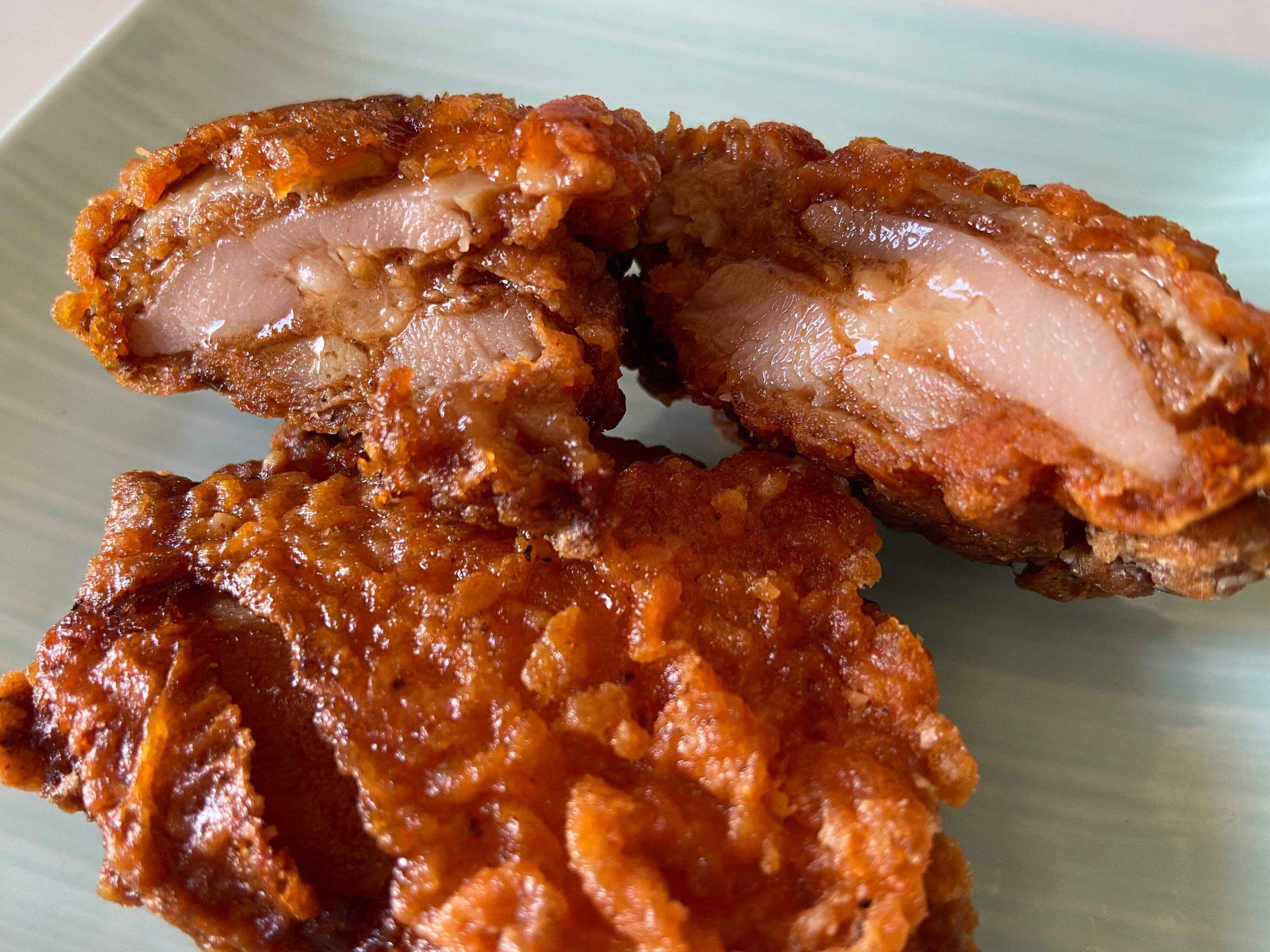 中国料理でよく使われる五香粉(ウーシャンフェン)がしっかりと効いた、ほんのりピリ辛のフライドチキンです。アジアン料理が大好きな方にはこの独特な香りはたまらないですよね。我が家の子どもたちはどうかな、と少し不安でしたが「普段の唐揚げとは違う味だね」と言いながらも、ザクザク衣とジューシーなチキンがおいしかったようでバクバク食べていました。