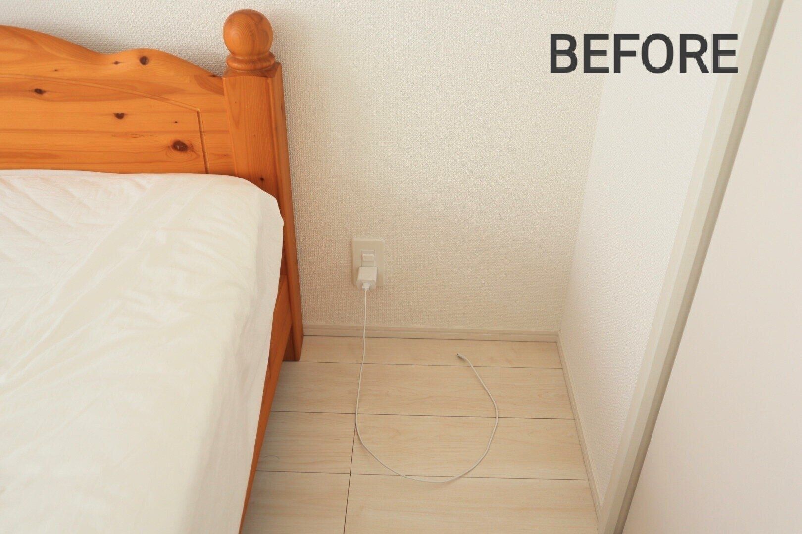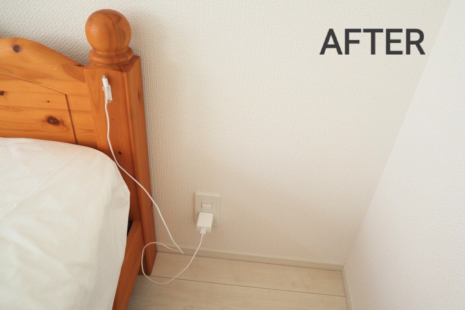 我が家では、夫がベッド脇のコンセントに充電コードを挿しっぱなしにしており、それが床に放置されているため、掃除の妨げになっていました。